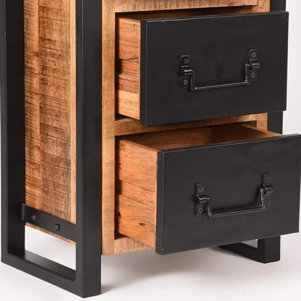 Ladekast Brussels van LABEL51 is met zijn ruwe mango houten oppervlaktes, gecombineerd met het zwart metalen frame een stoere en industriële kast. Ladekast Brussels is een solide en speelse ladekast die een fijn sfeertje geeft in een huis- en werkkamer maar ook ontzettend leuk is in een hal.