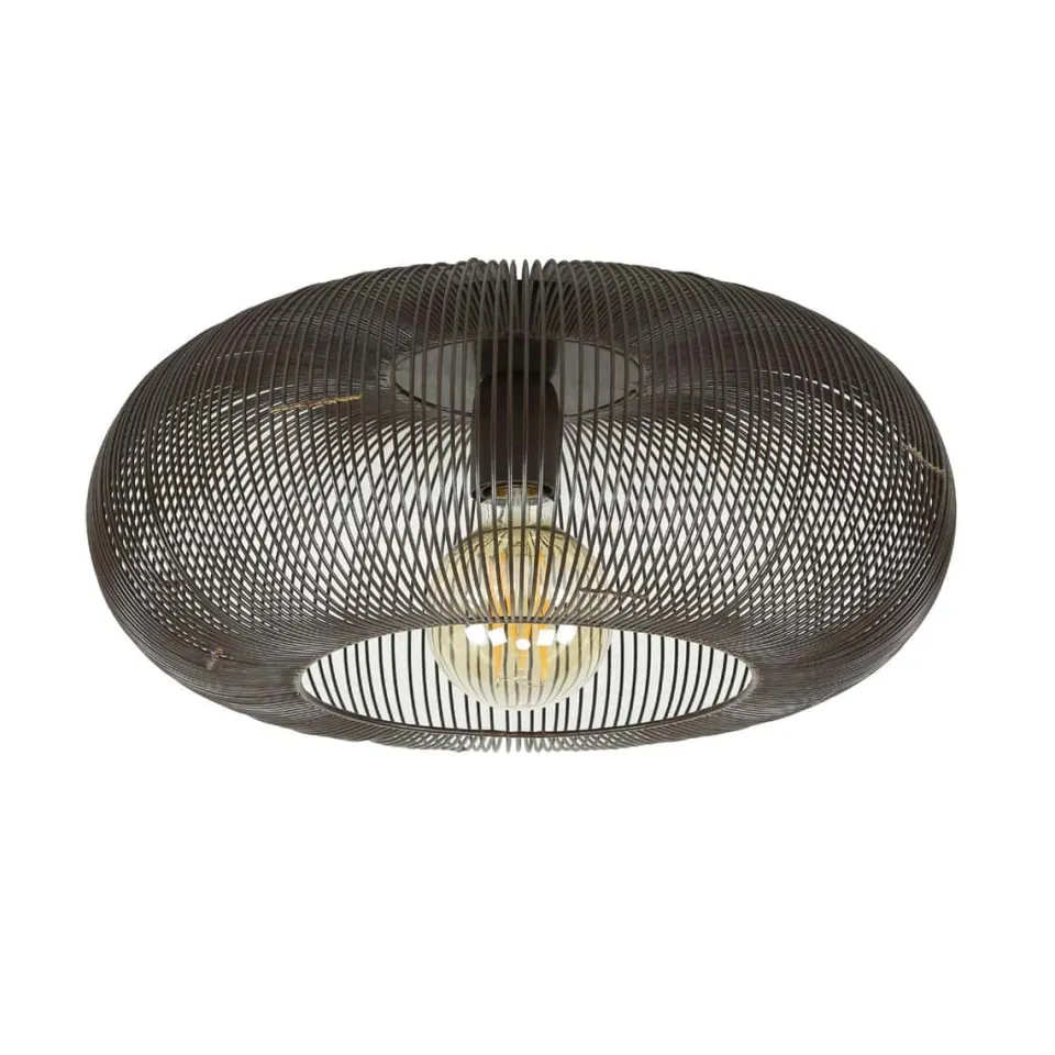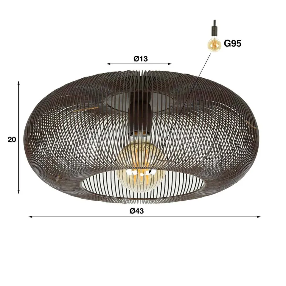 Deze trendy plafondlamp Veller is uitgevoerd in metaal. De kap is gemaakt in een disk vorm. Een mooi detail wat verwerkt is in de kap, zijn gouden soldeerplekken. Dit geeft de lamp een heel uniek uiterlijk. Er wordt aanbevolen LED lichtbron filament Bol 9.5cm te gebruiken.