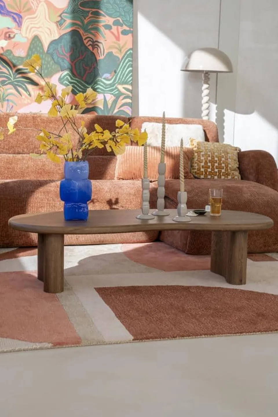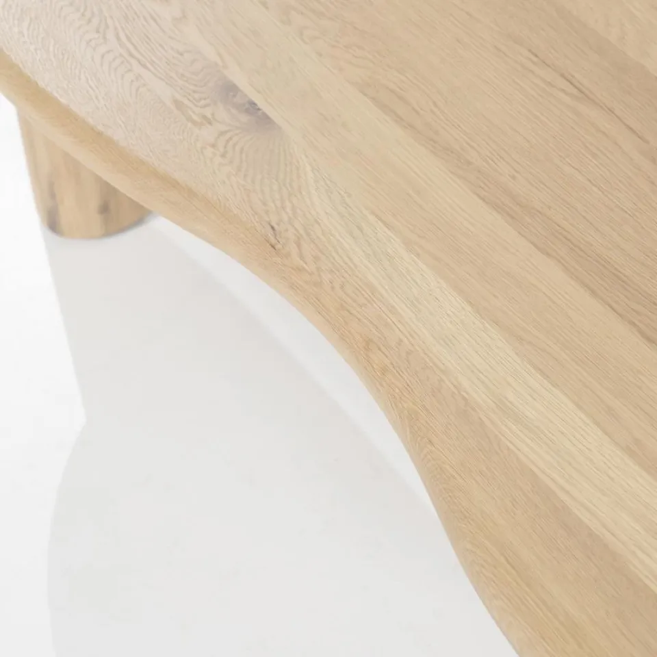 Salontafel Josh – een prachtige salontafel van eikenhout met een organische vormgeving. Het natuurlijke design straalt warmte en elegantie uit, ideaal voor een modern en sfeervol interieur!