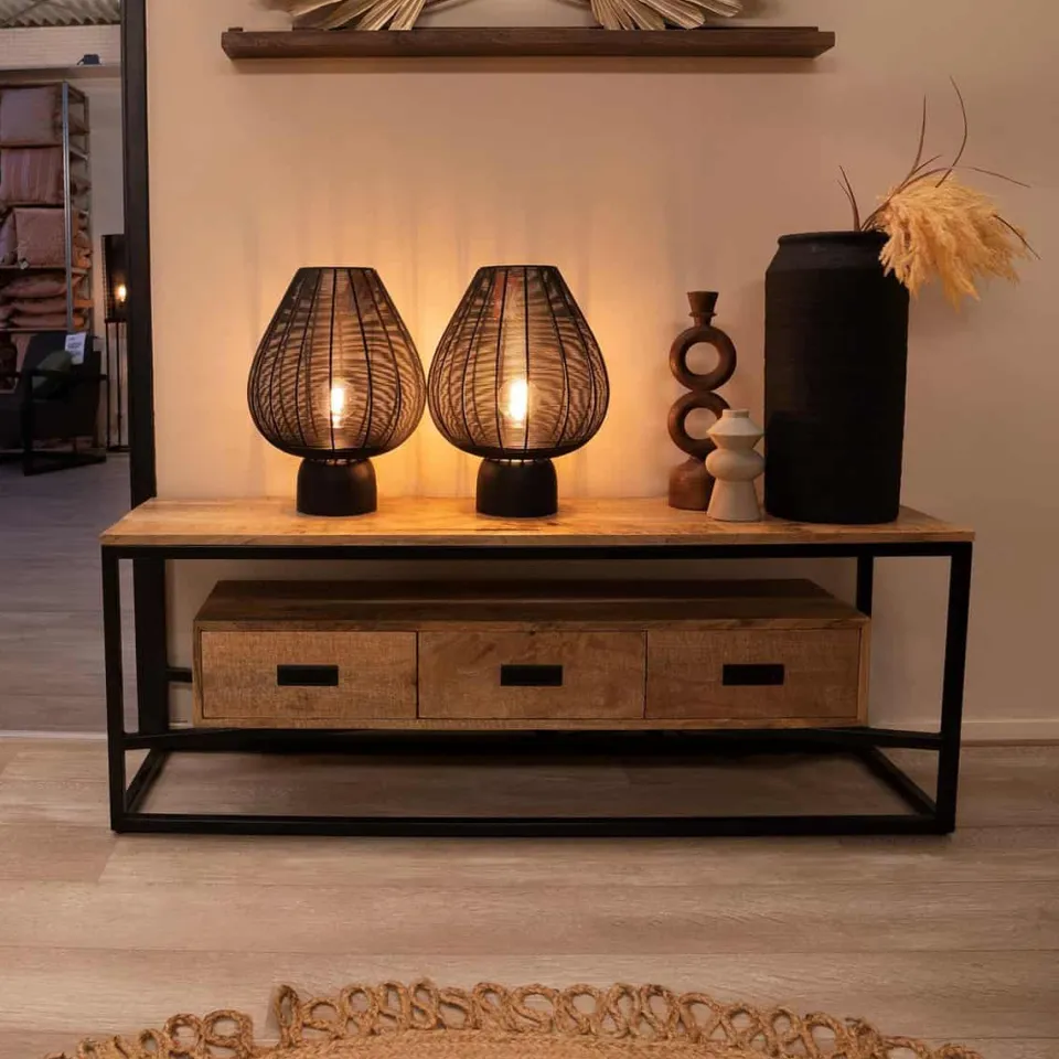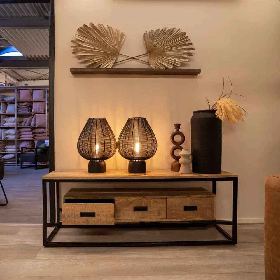 Mangohout is een natuurproduct en kan uitzetten of krimpen. Om je tv-meubel Sem in topconditie te houden, raden we aan om het regelmatig te behandelen met meubelolie. Dit beschermt het hout tegen invloeden van buitenaf en zorgt ervoor dat de natuurlijke schoonheid van het mangohout behouden blijft. Een paar druppels olie op een doek en het meubel afnemen is alles wat je nodig hebt voor langdurig plezier van je tv-meubel.