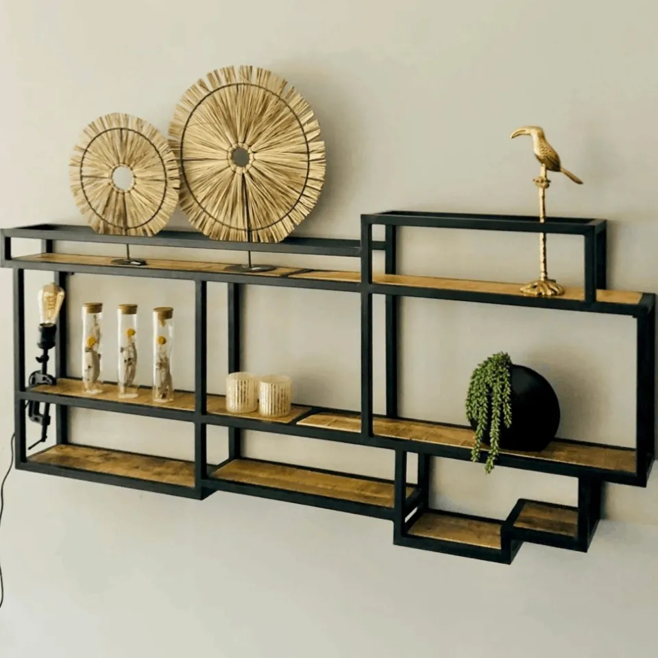 Maak kennis met Wandrek Saar, een ruim en functioneel wandrek dat perfect past in elk modern interieur. Dit wandrek is gemaakt van hoogwaardig mangohout en stevig metaal, waardoor het zowel stijlvol als duurzaam is. Dankzij het ruime ontwerp en de diverse opbergmogelijkheden is Wandrek Saar ideaal voor het organiseren en tentoonstellen van boeken, decoraties en andere persoonlijke items. Het warme mangohout voegt een natuurlijke charme toe, terwijl het metalen frame een robuuste, industriële uitstraling biedt.