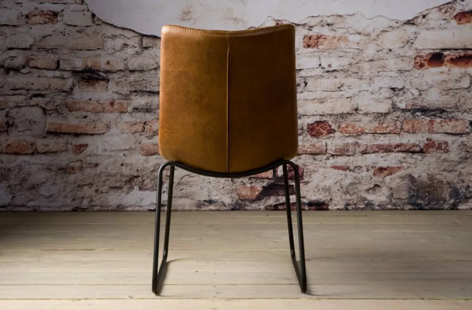 Eetkamerstoel Bruno is een stoere en comfortabele stoel met een krachtige uitstraling. De zitting is bekleed met onderhoudsvriendelijke microvezelstof en heeft een rechte, robuuste vormgeving die versterkt wordt door de strakke lijnen en dubbele horizontale stiknaden in de rugleuning. De vaste armleuningen bieden extra comfort, terwijl het zwarte metalen sledeframe zorgt voor een stabiele basis én een licht verend zitgevoel. Bruno is verkrijgbaar in diverse kleuren, waaronder cognac, antraciet en zwart, en past perfect in een industrieel of modern interieur.