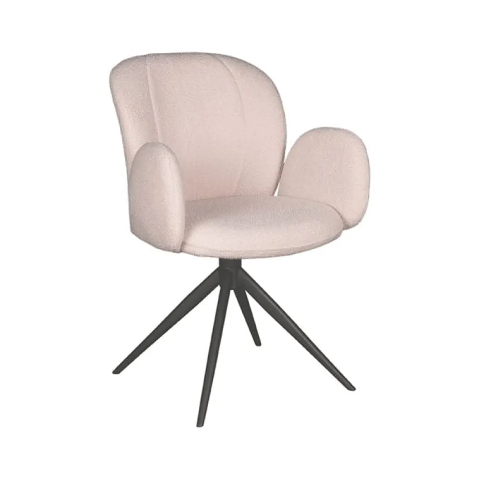 Eetkamerstoel Kimball is een luxe draaistoel die uitblinkt in comfort en uitstraling. De zitting is bekleed met hoogwaardige Natural Touch stof en voorzien van een licht gebogen rugleuning, wat zorgt voor een ontspannen zitpositie tijdens lange avonden aan tafel. Het stevige metalen onderstel is draaibaar in 360 graden en verkrijgbaar in zwart of taupe, wat Kimball niet alleen praktisch maakt maar ook visueel krachtig. Deze stoel laat zich perfect combineren met broertjes Kimo (zonder armleuningen) of Neo (met open armleuningen) voor een speelse en stijlvolle eetkameropstelling.