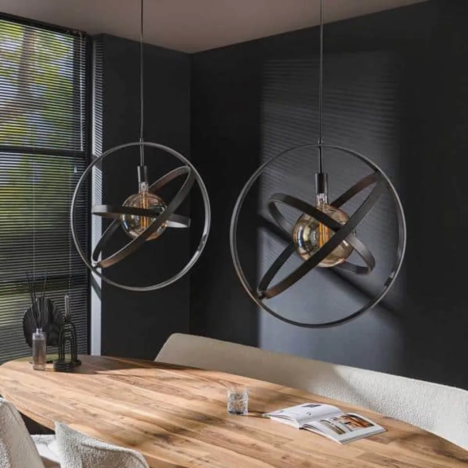 De hanglamp Galaxy is uitgevoerd in metaal met een artic black finish. De drie ringen kunnen plat gedraaid worden, waardoor het een heel klein pakket wordt. Daarnaast geeft dit ook de mogelijkheid om de lamp naar eigen inzicht op te hangen. De lamp is tot 150 cm in hoogte verstelbaar. Er wordt aanbevolen LED lichtbron filament 20 cm te gebruiken.