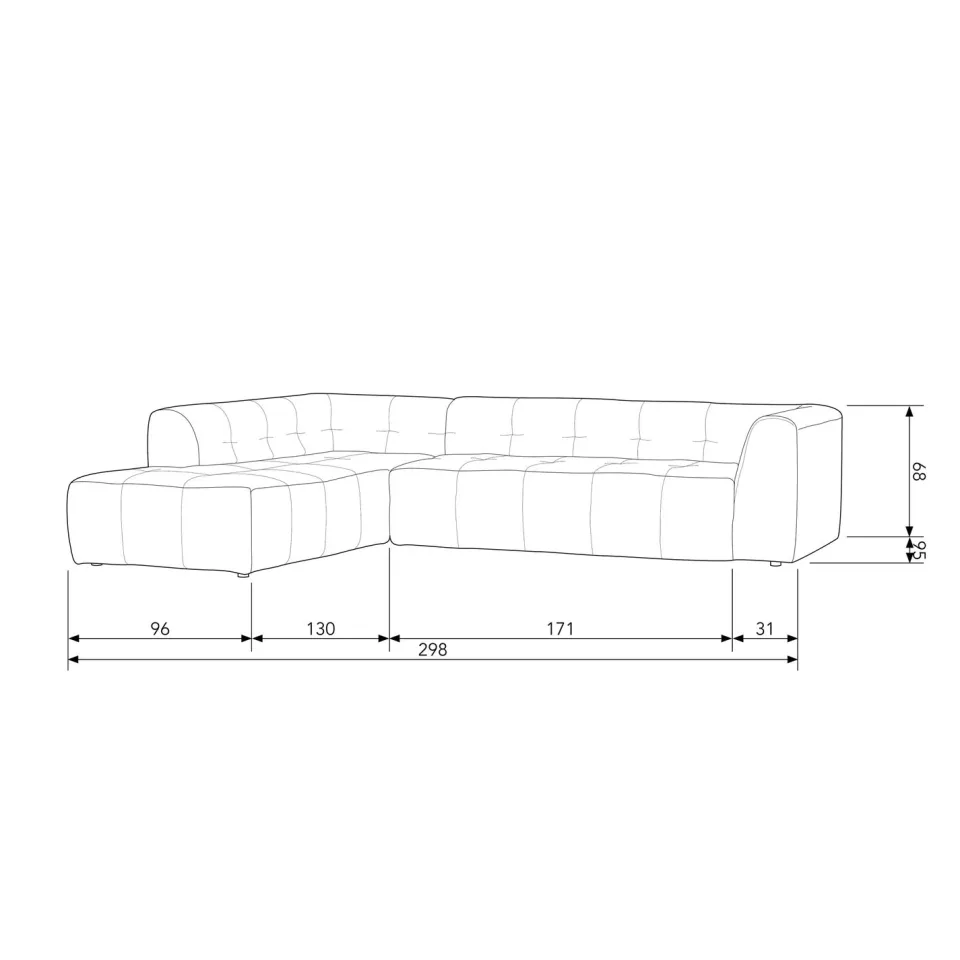 Daarnaast is Hoekbank Grid verkrijgbaar als 3-zits of als hoekbank, zodat je de opstelling eenvoudig afstemt op jouw woonruimte. Met zijn royale afmetingen van H 68 cm x B 298 cm x D 95/225 cm biedt deze bank volop ruimte om te loungen, samen te zijn of ontspannen te genieten van rustige avonden thuis.