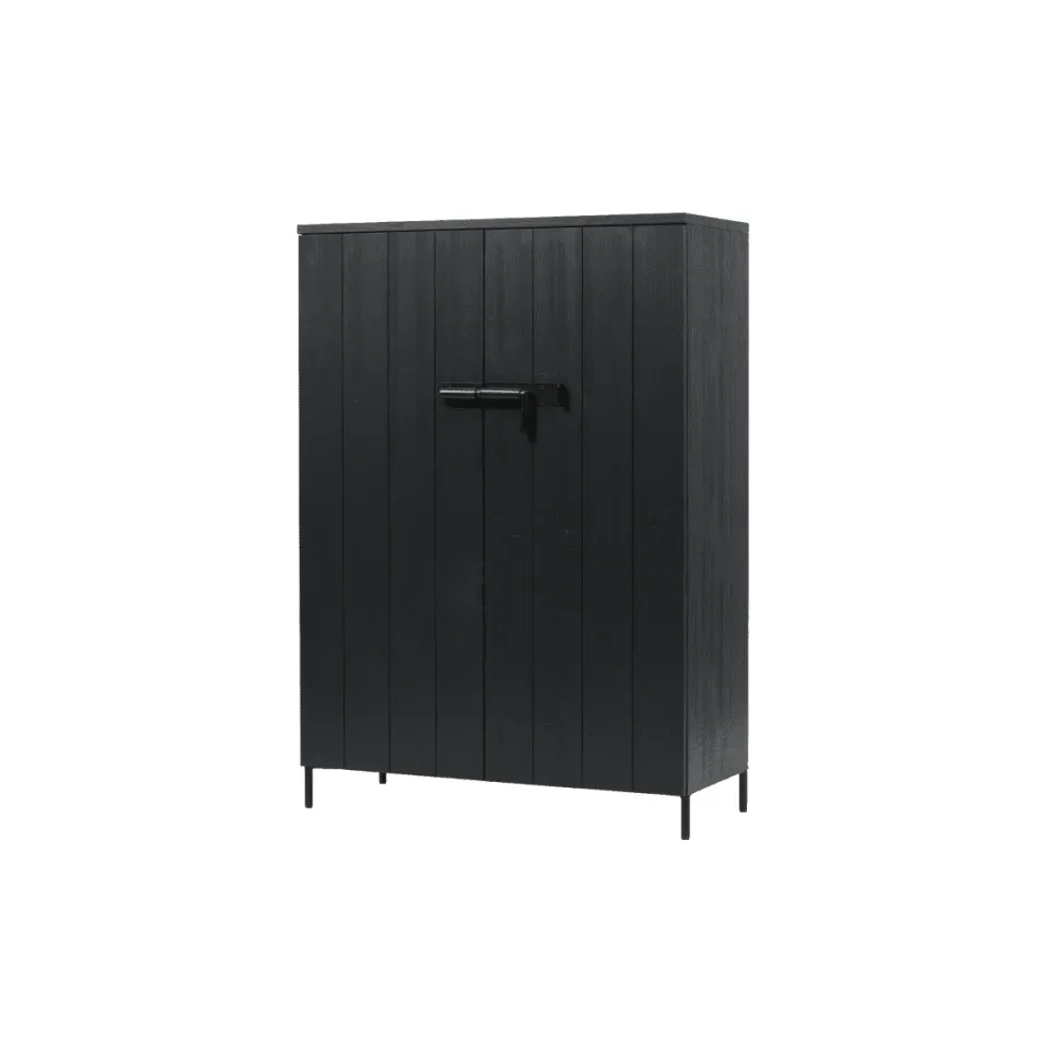 De Bruut 2-deurs kast is een stoere opbergkast en een aanwinst voor elke ruimte. De kast is gemaakt van grenen hout dat een geborstelde afwerking heeft. De pootjes en de gave sluiting zijn gemaakt van metaal. Zowel het grenen hout als het metaal is afgewerkt in de kleur zwart. Super leuk als opbergkast voor bijvoorbeeld in de kinderkamer of woonkamer!