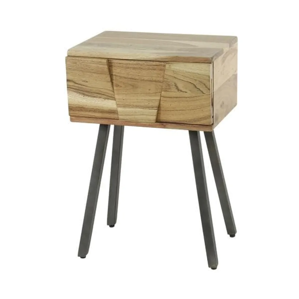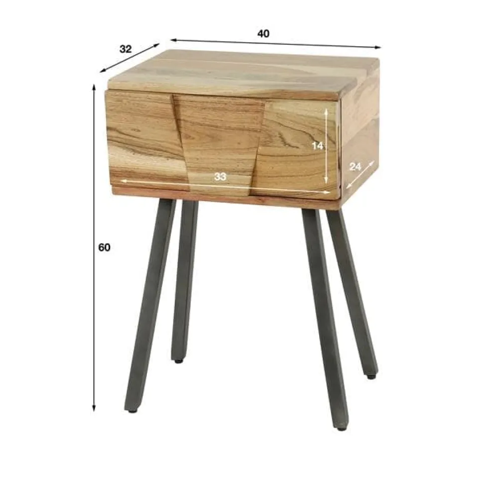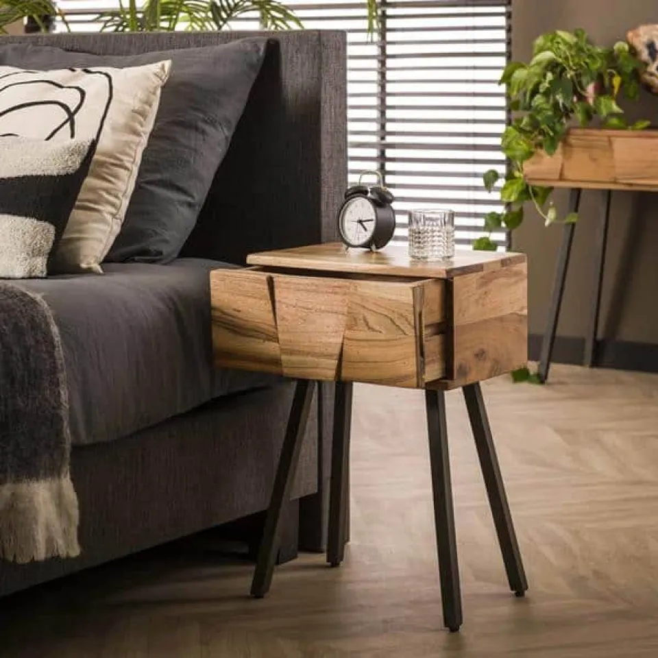 Dit trendy nachtkastje ‘Demn’ is uitgevoerd in massief acacia hout met een prachtige bewerking op het front. Het nachtkastje heeft 1 lade. Dit geeft het nachtkastje een stoere, maar chique touch. Een echte eye-catcher!