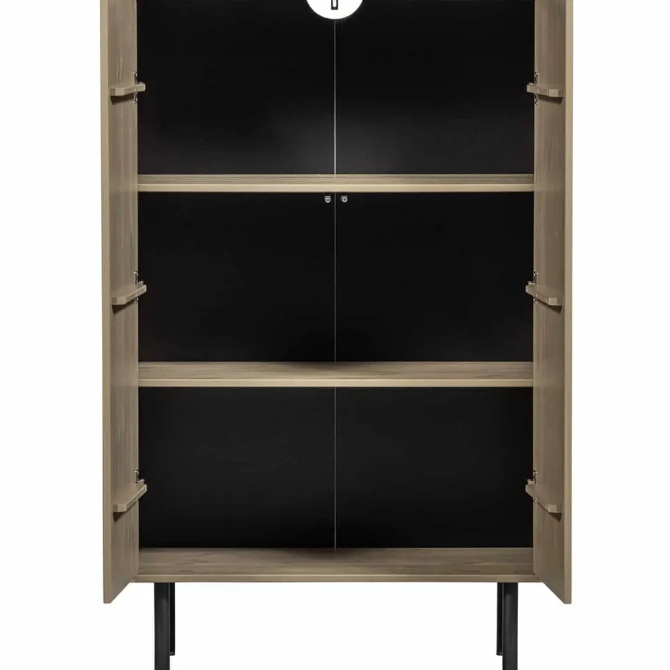 Een clean design, speels houtpatroon en een sprekend kleurcontrast. Dat zijn de kenmerken van deze Cadiz opbergkast uit de collectie van het Nederlandse interieurmerk WOOOD. De bruine afwerking houdt het ontwerp stijlvol en modern met als spannende tegenhanger de stoere, stevige zwarte poten. Het organische decor maakt dat het item speels oogt en zich goed laat gebruiken in een kinderkamer.