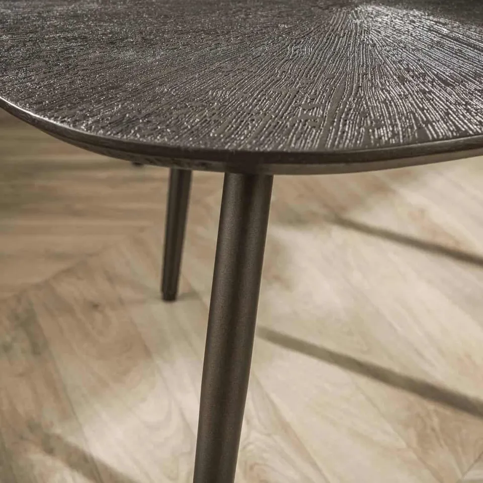 De salontafel Thea is uitgevoerd in een set van twee. Het blad met verjongde rand is gemaakt van MDF en afgewerkt met een Ray Metal finish in een warme bruin-bronzen kleur. De poten zijn slank, licht taps en vervaardigd uit gepoedercoat staal in een bijpassende tint. De tafels kunnen samen of los van elkaar worden gebruikt.