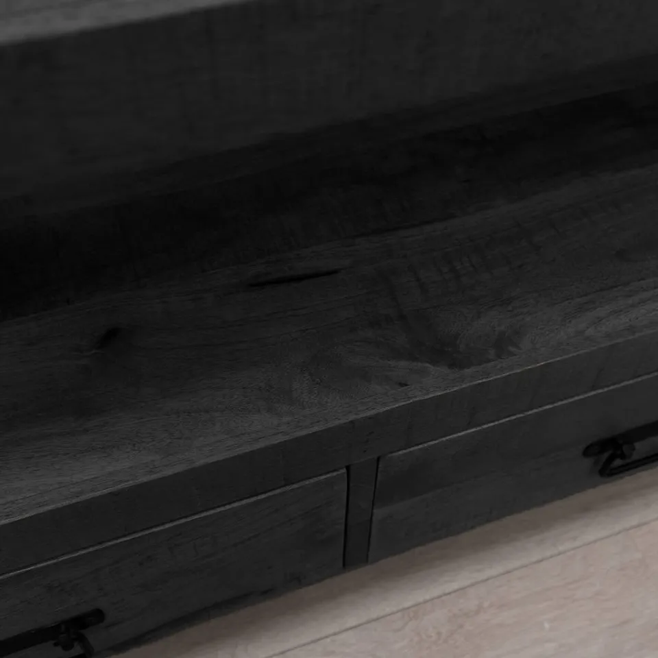 TV-meubel Britt Zwart is een moderne eyecatcher met industriële uitstraling en onderdeel van de HUUS collectie. Het meubel is gemaakt van mango hout en afgewerkt met zwart metaal voor een robuuste maar elegante look. TV-meubel Britt Zwart is verkrijgbaar in meerdere formaten met ruime lades, biedt het praktische opbergruimte voor al je media-accessoires. Dit meubel is onderdeel van de populaire meubelserie Britt van HUUS en sluit perfect aan bij diverse woonstijlen.