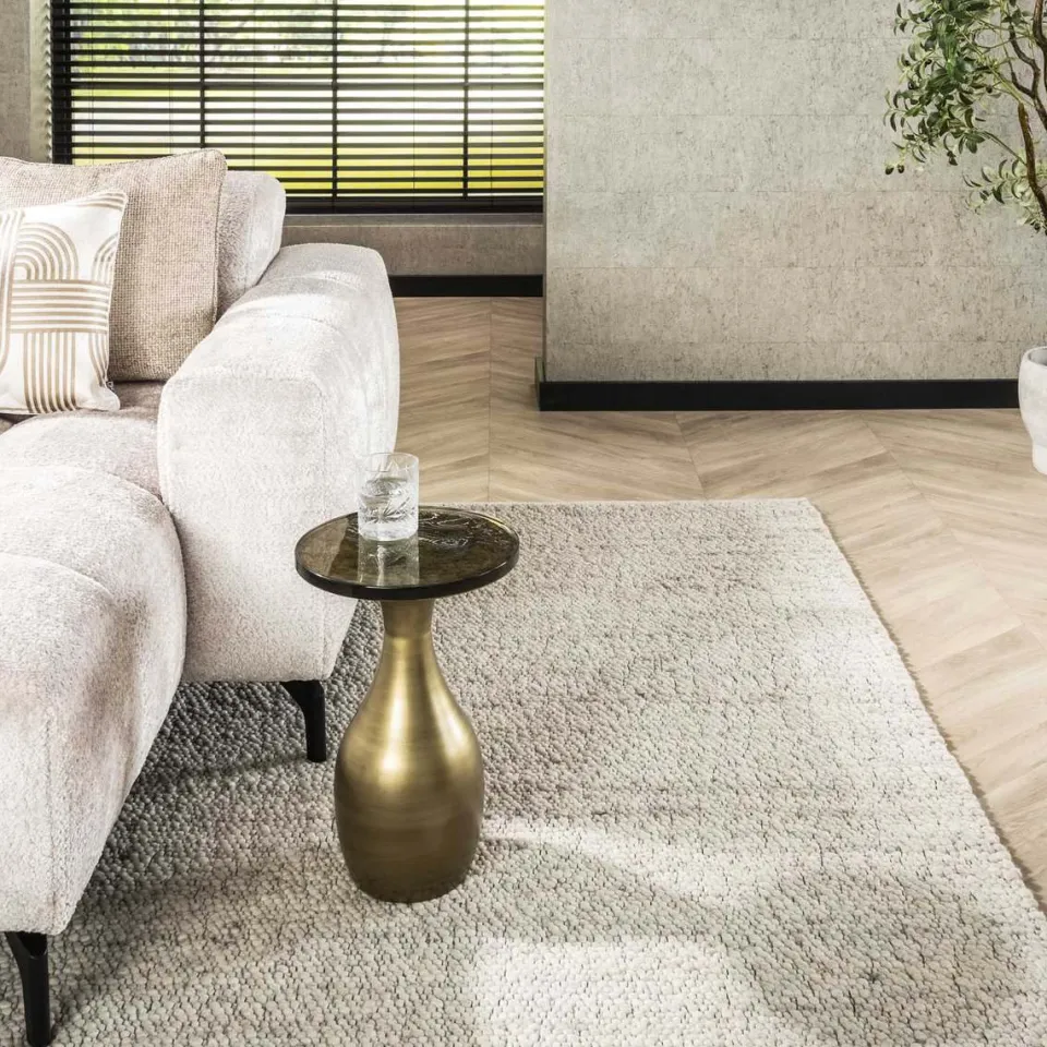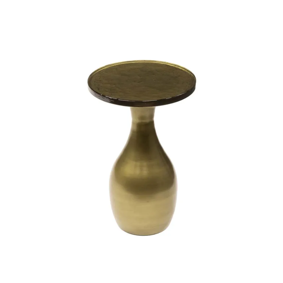De Classic bijzettafel in druppelvorm is voorzien van een blad van getrokken glas. Dit type glas wordt op traditionele wijze vervaardigd en heeft een licht golvend oppervlak met subtiele onregelmatigheden. De tafel is verkrijgbaar in twee kleurvarianten: antiek koper en antiek goud. Het metalen onderstel heeft een elegante druppelvorm en is afgewerkt in een bijpassende finish. Ontdek alle artikelen uit de Classic -serie.