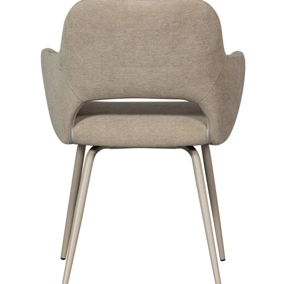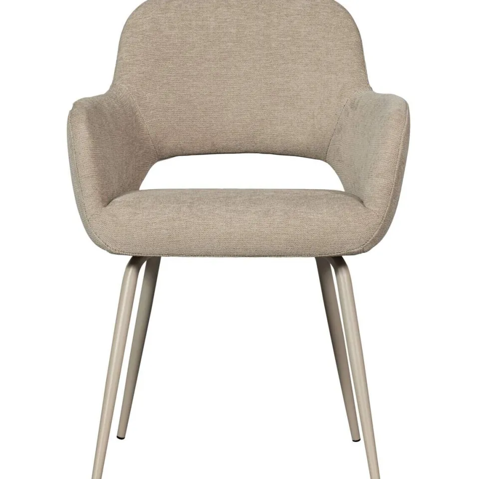 Om de stof mooi te houden, raden we aan de stoel regelmatig te stofzuigen met een zachte meubelborstel. Voor extra bescherming tegen vlekken kun je een textiel impregneerspray gebruiken, die eenvoudig mee te bestellen is. Plaats viltjes onder de poten om je vloer te beschermen tegen krassen.