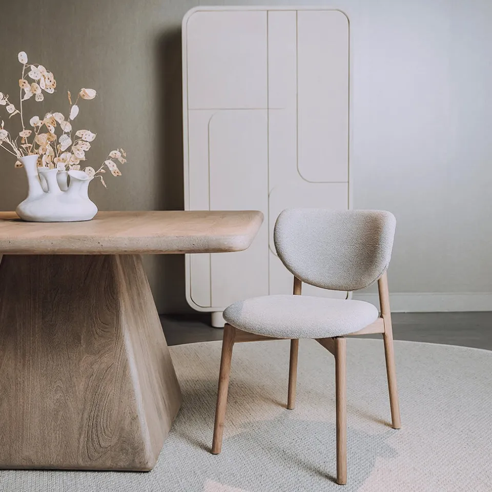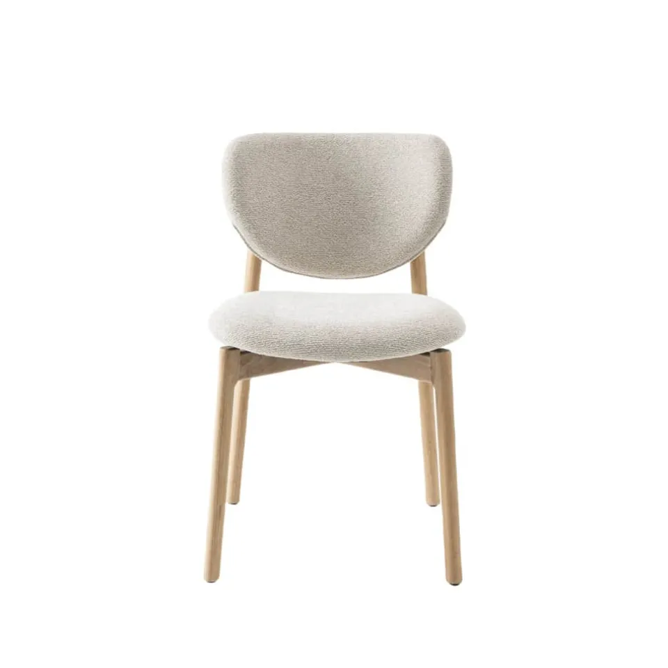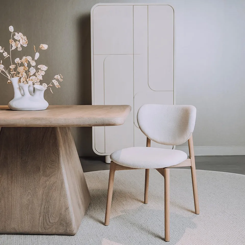 Eetkamerstoel Pimonte is een trendy en comfortabele eetstoel met een vleugje Scandinavisch design. De elegante zitting met afgeronde rugleuning is bekleed met een zachte, hoogwaardige stof en rust op een licht houten frame dat de stoel een natuurlijke uitstraling geeft. Dankzij de subtiele vormgeving en het lichte materiaalgebruik past Pimonte perfect in moderne, minimalistische en warme interieurs. De stoel is verkrijgbaar in ivoor, beige en espresso en wordt geleverd per twee stuks.