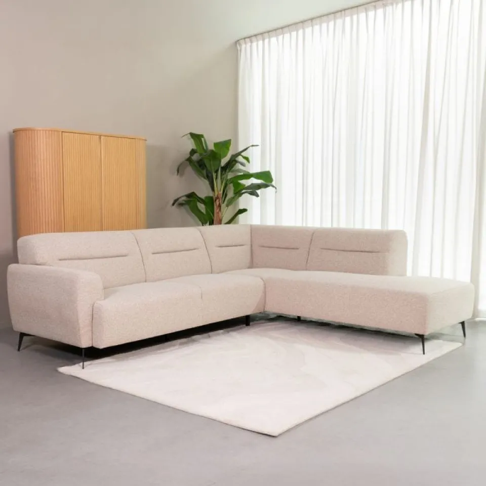 De Hoekbank Bolzano van HUUS is een elegante bank met een luxe en uitnodigende uitstraling. Dankzij de zachte bouclé bekleding voelt deze bank warm en comfortabel aan, terwijl de hoekopstelling zorgt voor voldoende zitruimte. Zo vormt dit model een stijlvolle en comfortabele basis in de woonkamer.