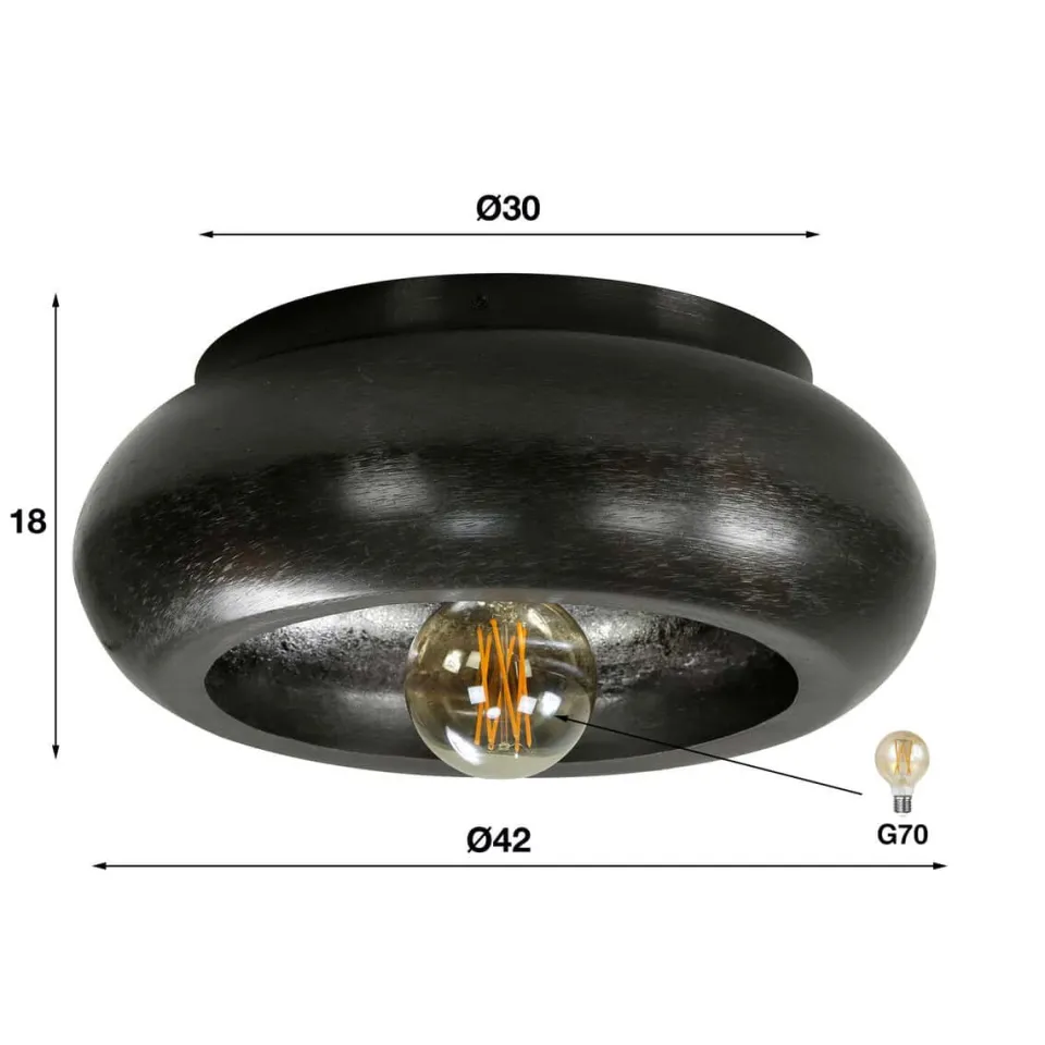 Deze plafondlamp Skylar is uitgevoerd in metaal met een ambachtelijke bewerking aan de binnenkant van de kap wat zorgt voor een prachtige reflectie.