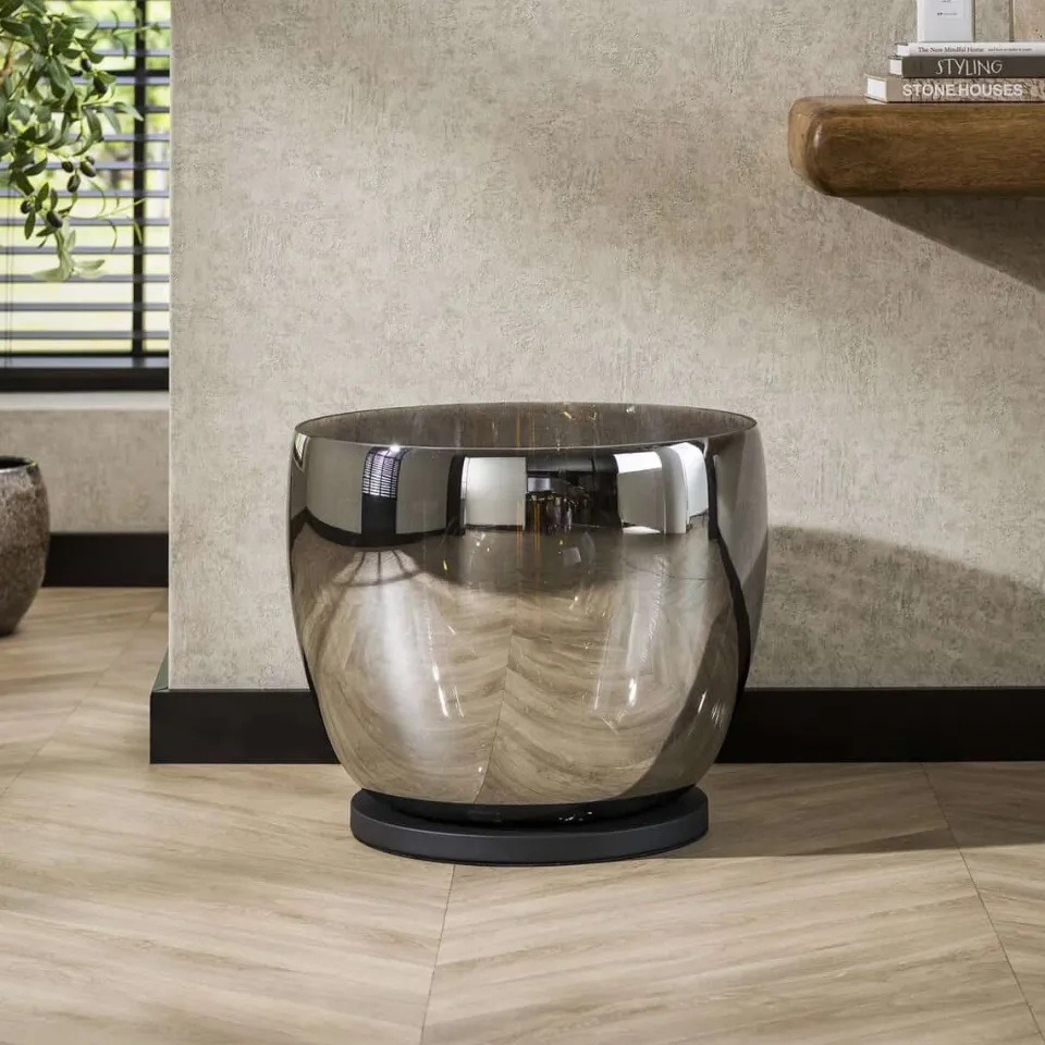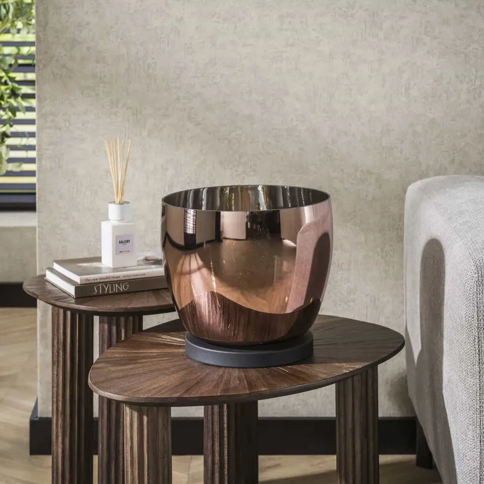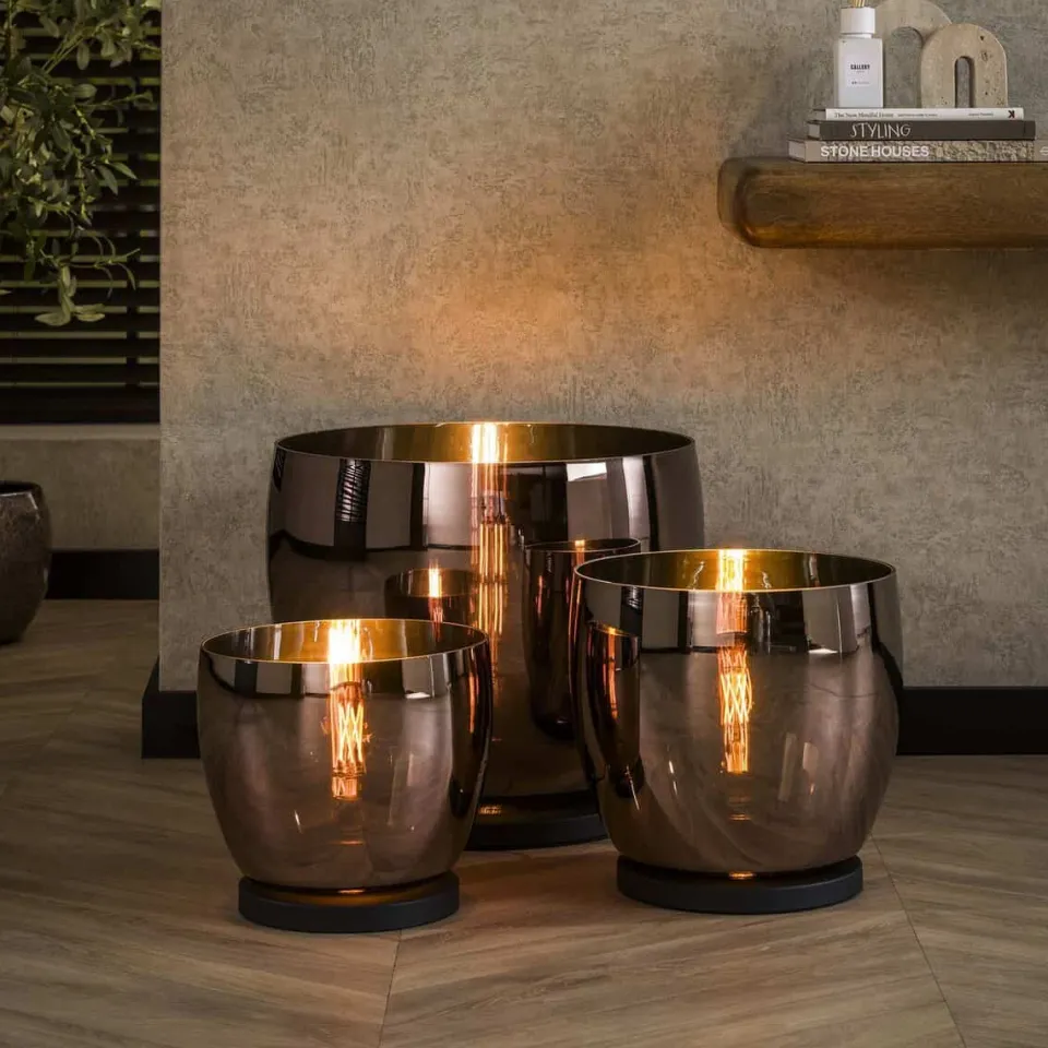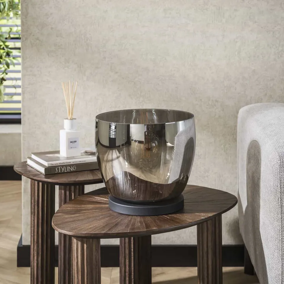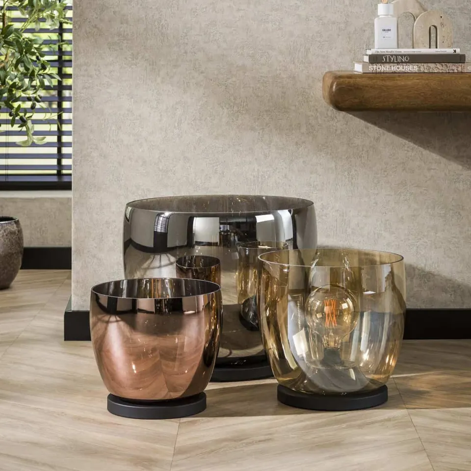 Deze prachtige Tafellamp Geraldine is een echte eye-catcher! De lamp is in drie verschillende uitvoeringen gebracht, namelijk: amber kleurig, koper en chroom. De lamp is ook uitgevoerd in drie verschillende maten en de lamp komt het best tot haar recht wanneer deze gecombineerd wordt met 1 of 2 modellen van de andere maatvarianten.