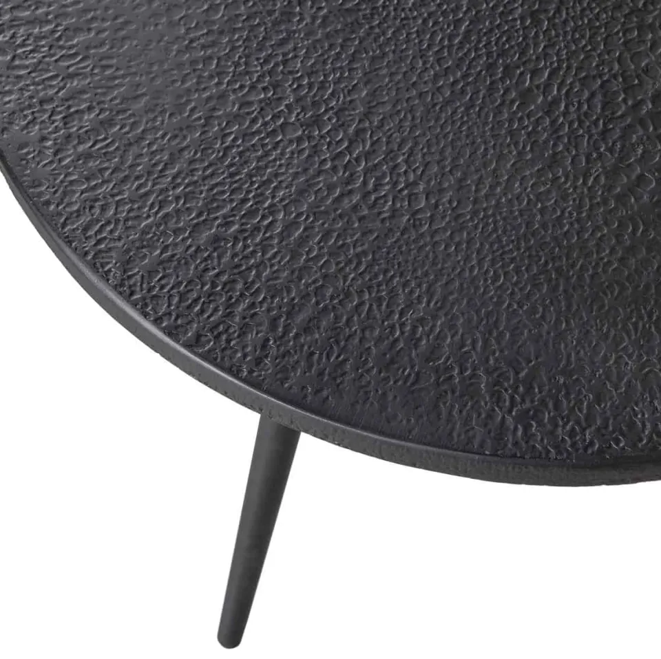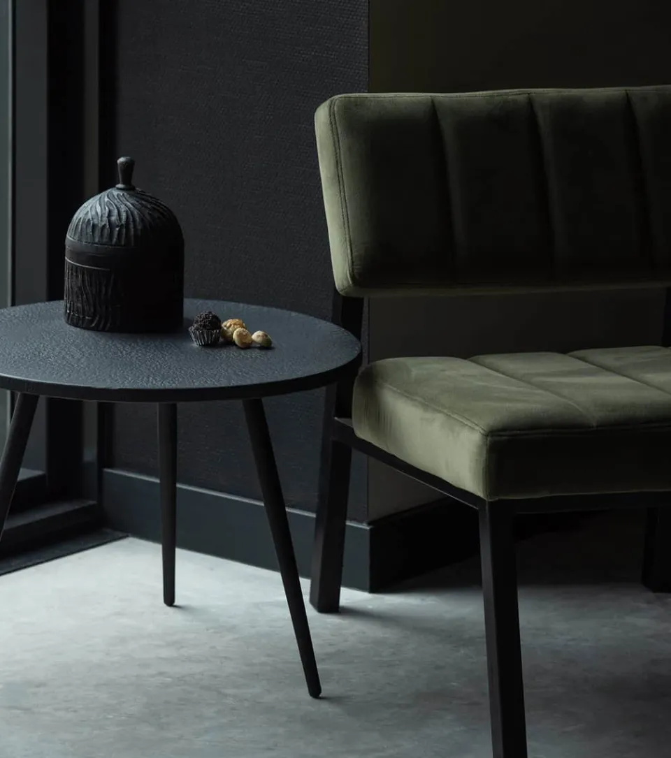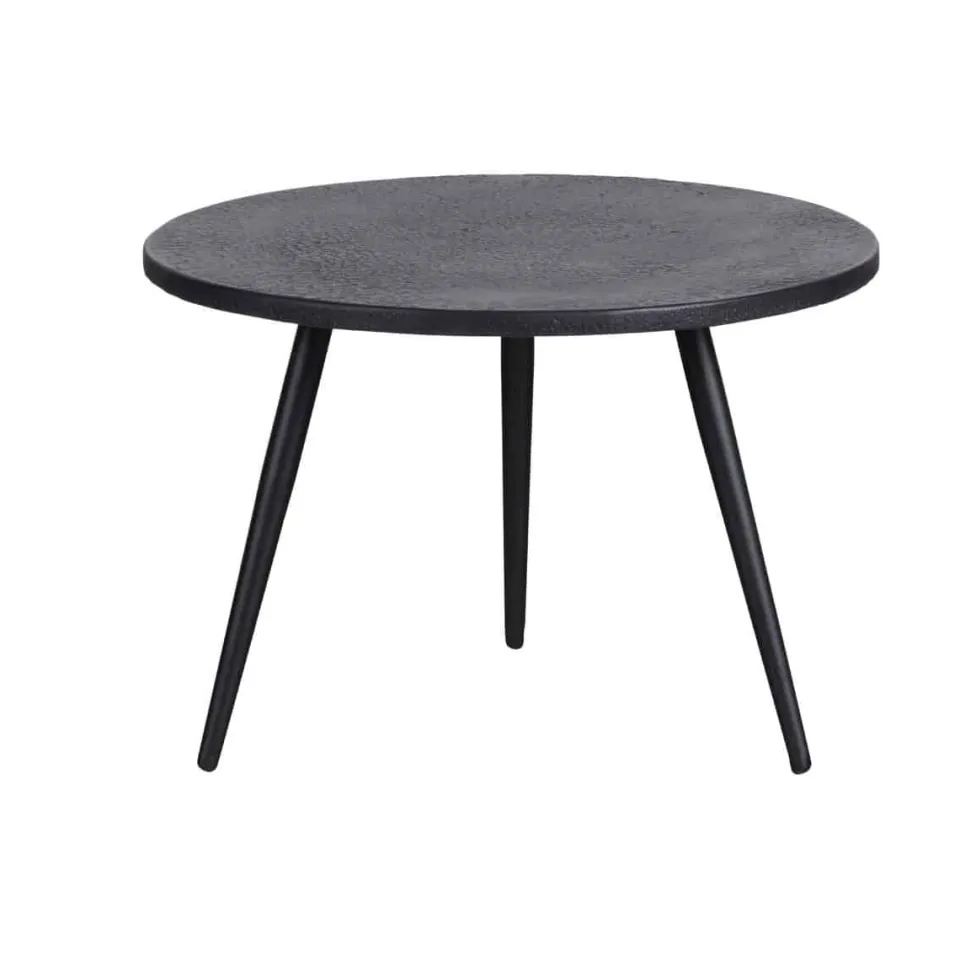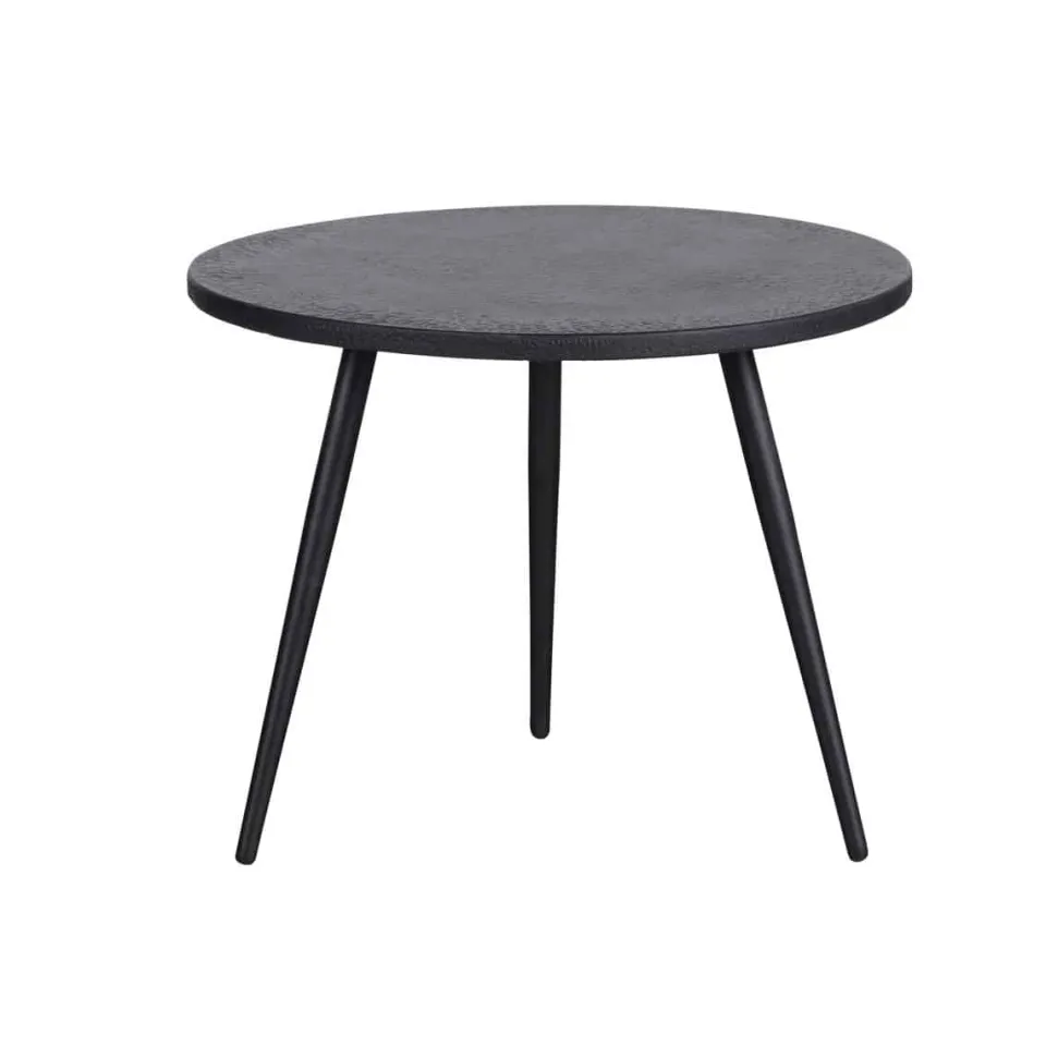 De bijzettafel set van twee vormt een speels paar. De Suze bijzettafels zijn geschikt voor zowel indoor als outdoor. De tafelbladen zijn gevormd uit sterk multiplex hout en afgewerkt met een metalen coating, wat zorgt voor een waterproof laag. De metalen poten hebben een slanke vorm en zijn afgelakt in matzwart.