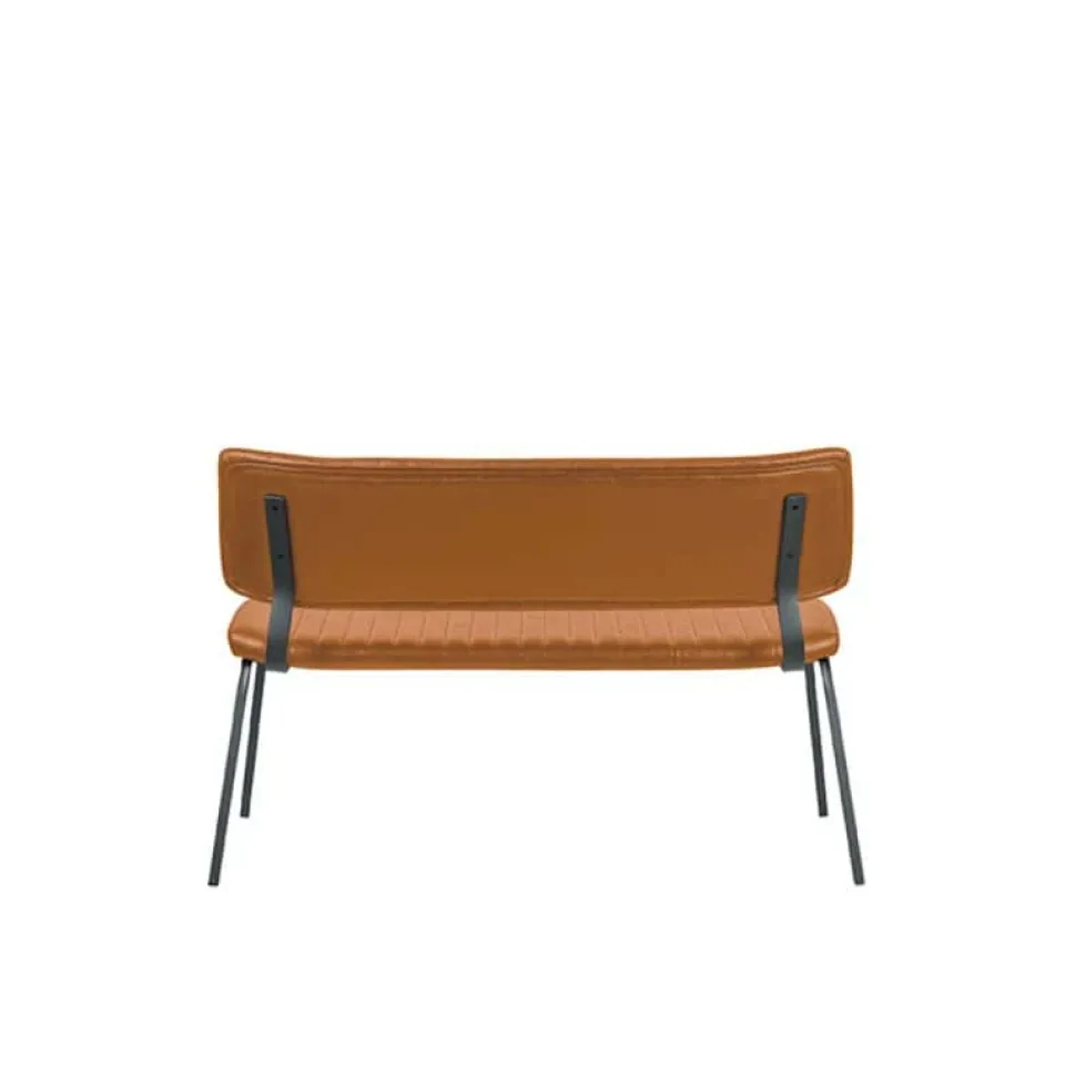 Eetkamerbank Gusto van LABEL51 is een stijlvolle bank met een strak en modern design, perfect voor een eigentijdse eetruimte. De zitting en rugleuning zijn bekleed met kunstleder in een warme, bruine tint die zorgt voor een luxe uitstraling én praktisch gebruiksgemak. Het verticale stiksel op de rugleuning geeft de bank extra karakter, terwijl het minimalistische onderstel van zwart metaal zorgt voor een stoere en luchtige uitstraling. Gusto biedt een comfortabele zit en is ideaal voor lange, gezellige diners aan tafel.