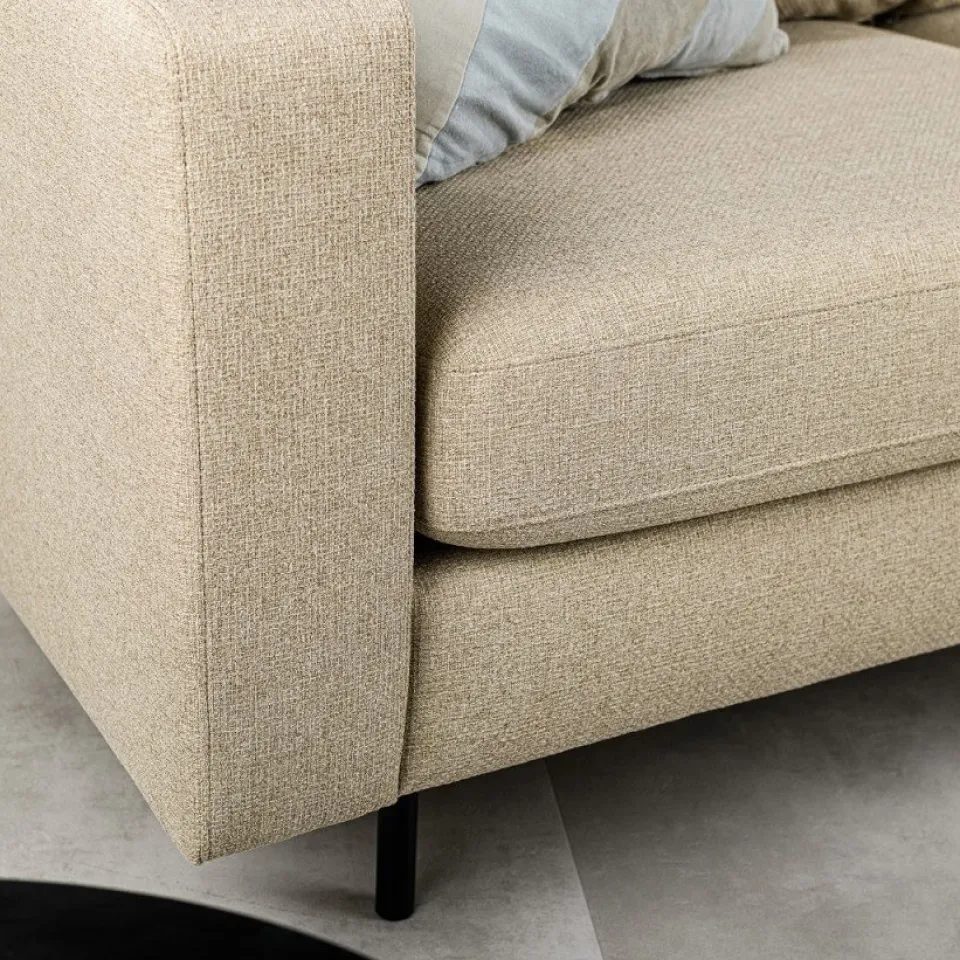 De bank is bekleed met 100% polyester en verkrijgbaar in stijlvolle kleuren zoals beige en ivoor. Deze lichte tinten zorgen voor een frisse basis in de woonkamer en laten zich eenvoudig combineren met andere meubels en accessoires. De comfortabele zitdiepte en prettige rughoogte bieden goede ondersteuning, waardoor je heerlijk kunt ontspannen, ook tijdens langere momenten op de bank.