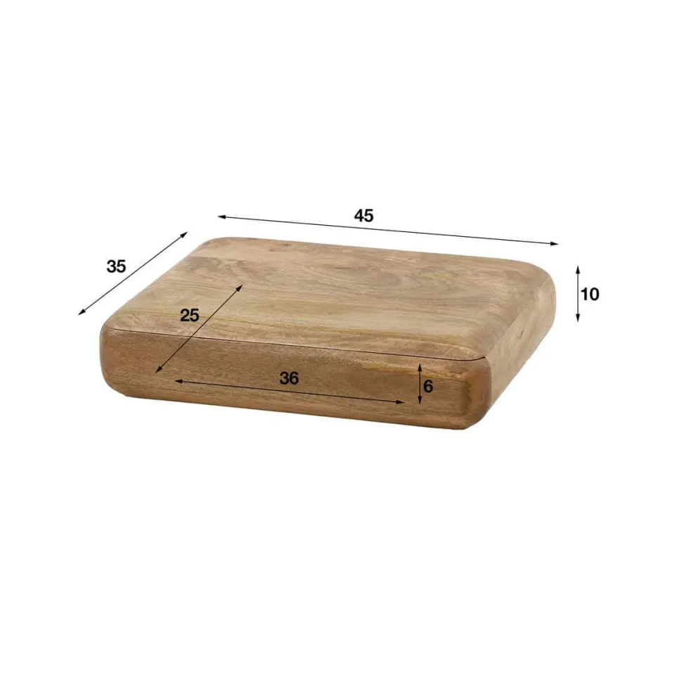 Het hangende nachtkastje Gwenda is gemaakt van duurzaam mango hout en heeft een eigentijds design met prachtige ronde afwerkingen. Het nachtkastje wordt bevestigd aan de muur met een strip met drie schroefgaten, waardoor het zweeft en ruimte bespaart.
