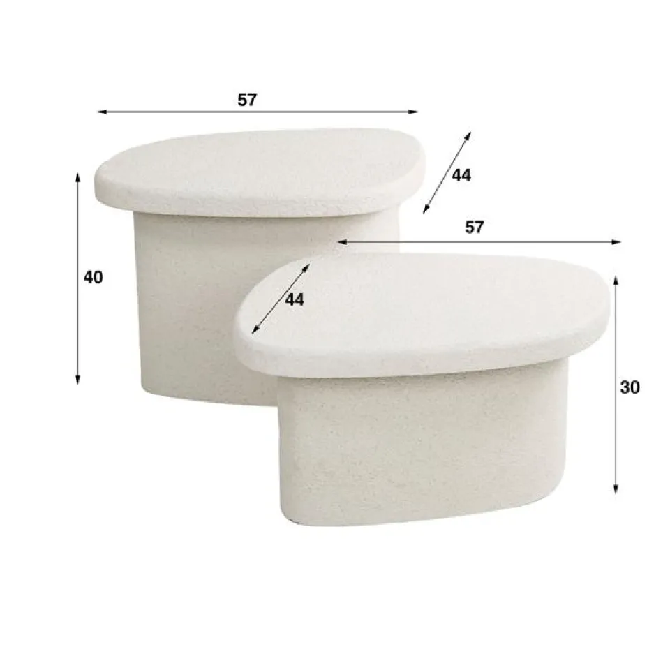 Deze salontafel set van 2 ‘Steffi’ is uitgevoerd in marmer composiet. Het setje van 2 kan naar eigen inzicht bij elkaar gezet worden. Een eigentijdse salontafel met een frisse uitstraling. Het setje bestaat ook in een grotere uitvoering.