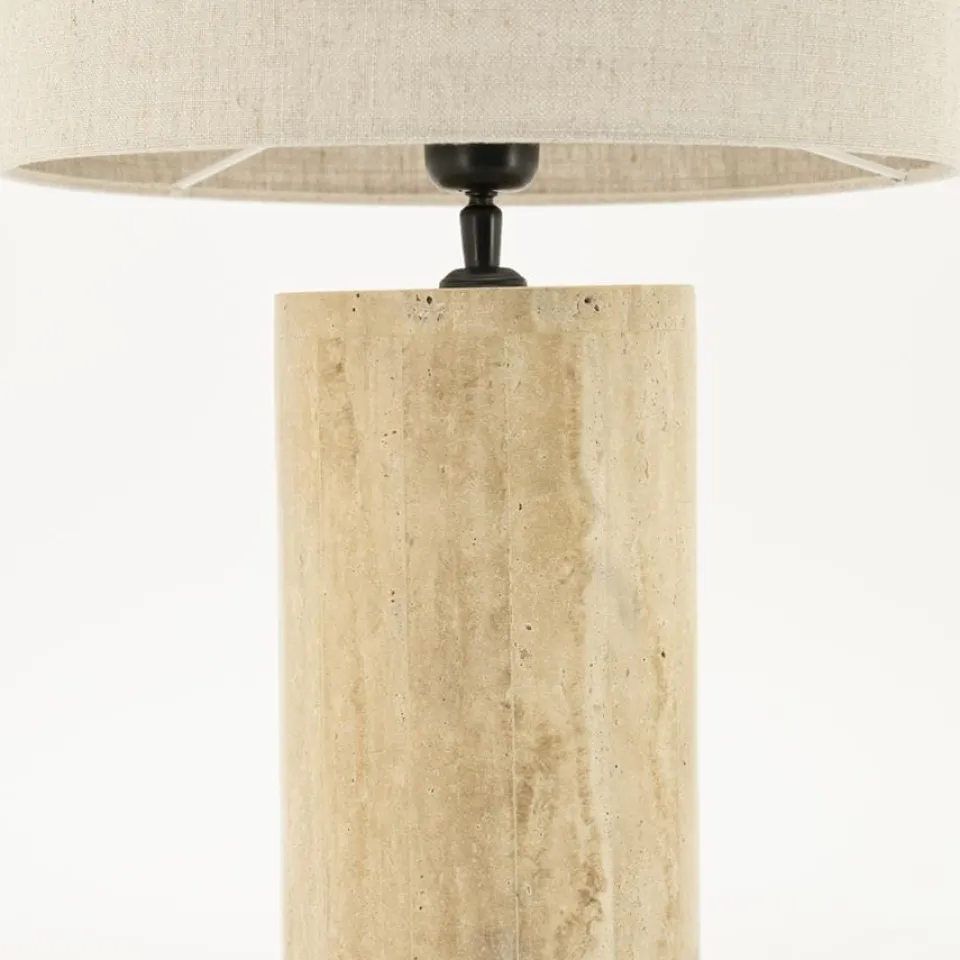 De By-Boo Tafellamp Amara combineert elegantie en natuurlijke materialen in een tijdloos design. Met een voet van travertin en een lampenkap van linnen straalt deze lamp een serene en luxe sfeer uit. Verkrijgbaar in een grote en kleine variant, past de Amara perfect in elke interieurstijl, van modern tot Japandi.