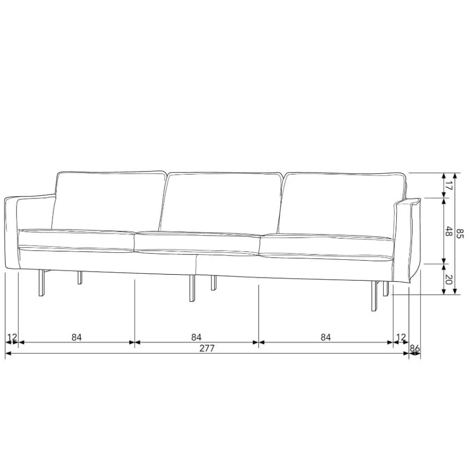 De bank is bekleed met hoogwaardige velvet stof en verkrijgbaar in een breed scala aan stijlvolle kleuren, zoals blauw, geel, grijs, lichtgrijs, pistache, roest en warm groen. Daardoor stem je deze 3-zits eenvoudig af op jouw interieur, of je nu kiest voor een subtiele basis of een opvallend kleuraccent. De royale afmetingen bieden voldoende ruimte om samen te zitten of heerlijk te ontspannen. Daarnaast zorgen de comfortabele zitdiepte en prettige rughoogte voor goede ondersteuning tijdens dagelijks gebruik.