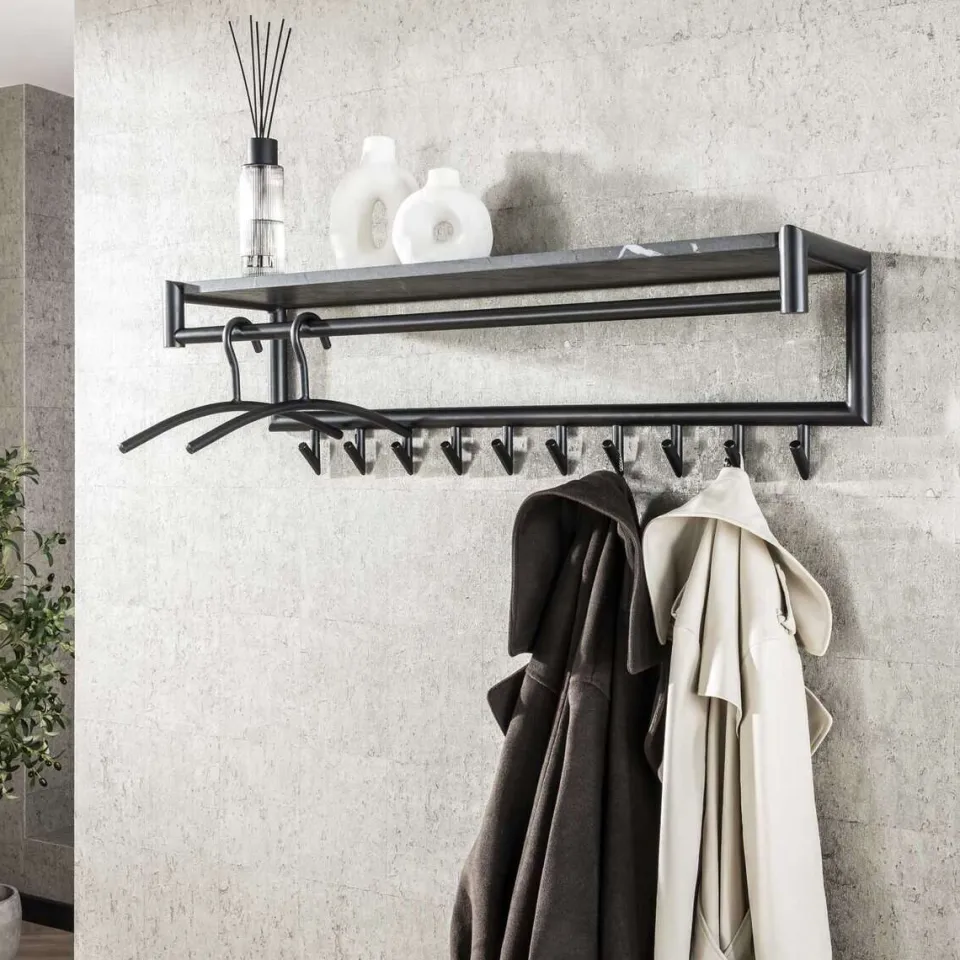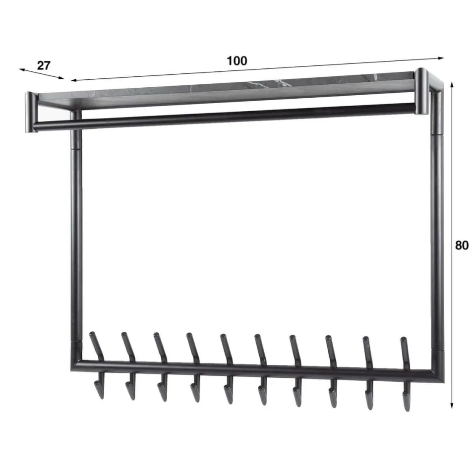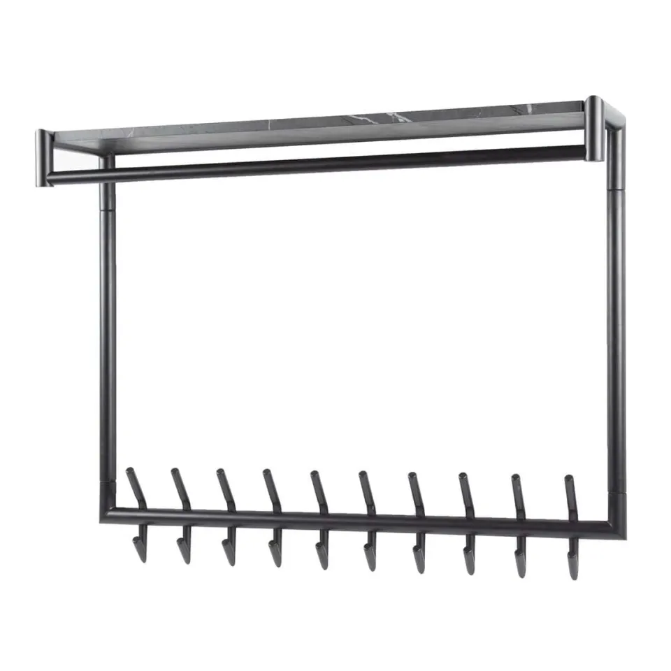Deze kapstok is uitgevoerd in melamine met een ceramic uitstraling en beschikt over 10 of 20 haken, een roede en een prachtige hoedenplank. Deze kapstok is eigentijds en zo stijlvol. Deze kapstok kan door middel van twee bevestigingspunten eenvoudig aan de wand worden gemonteerd.
