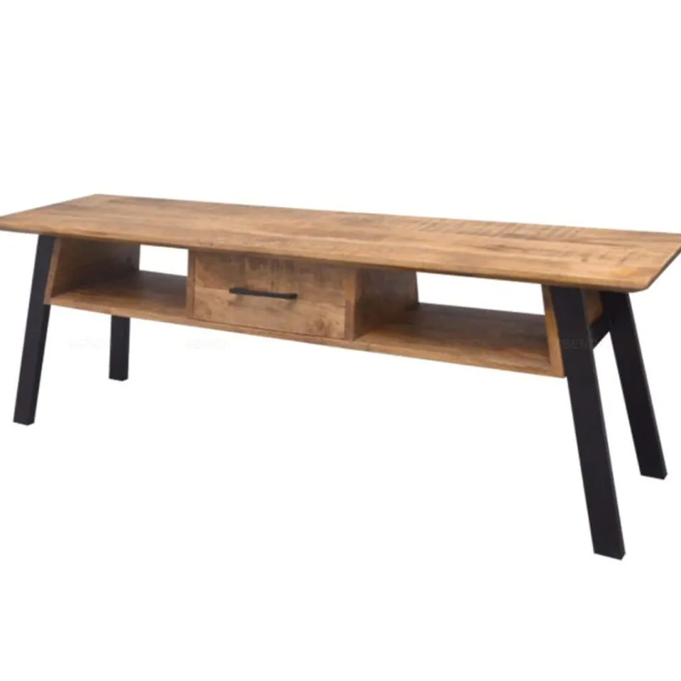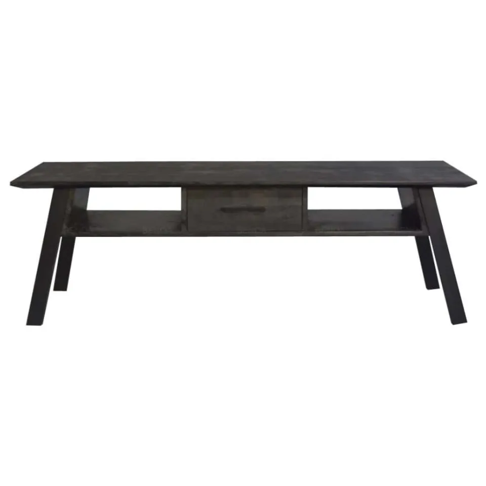 Strak zwart of naturel mangohout met ge-poedercoate zwarte poten.