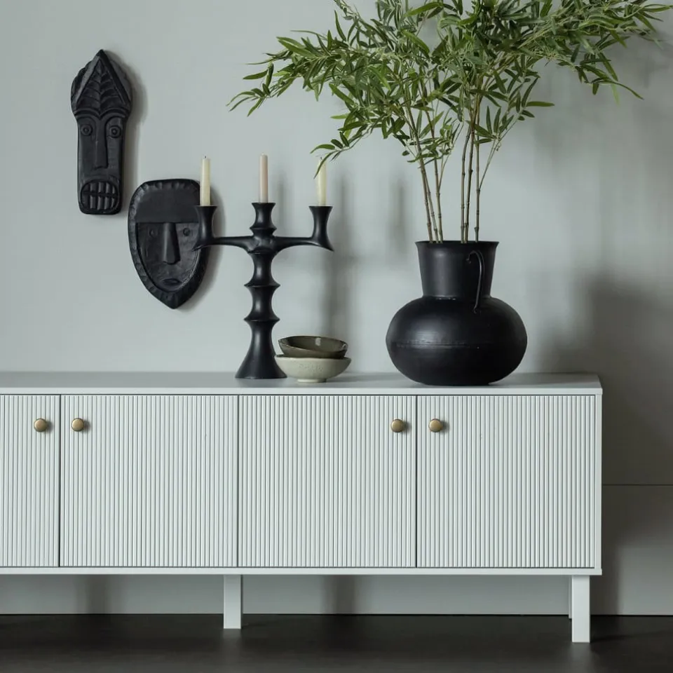 Madu is voorzien van vier deuren met goudkleurige knopjes. Achter deze deuren bevinden zich 4 legplanken. De ruimtes hebben een breedte van 76 cm en een diepte van 43 cm.