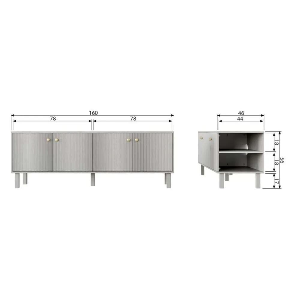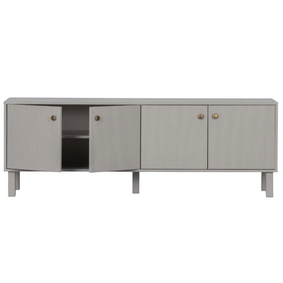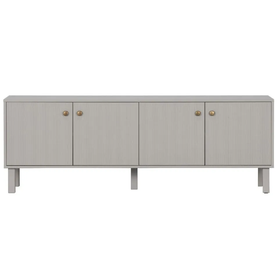 Madu is een stijlvol, modern tv-meubel vervaardigd uit grenenhout met een wolkengrijze afwerking. Dit geeft de kast een tijdloze uitstraling. De goudkleurige knoppen in combinatie met het lichtgekleurde grenenhout geven de kast tevens een moderne en stoer karakter.
