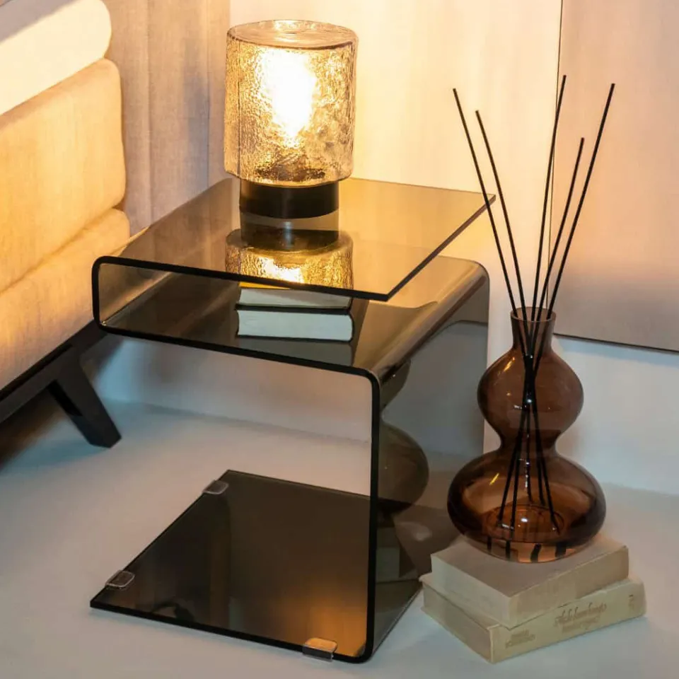 Het transparante glazen tafelblad geeft de Shadow een luchtige en ruimtelijke uitstraling, en het slanke metalen frame voegt een vleugje subtiliteit toe. De Shadow bijzettafel is niet alleen functioneel, maar ook een decoratieve aanvulling op elke ruimte. Plaats het naast je favoriete fauteuil of bank en geniet van het gemak van extra tafelruimte!