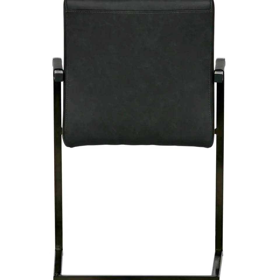 Eetkamerstoel Bas is een stoere en comfortabele toevoeging aan je eethoek. De zitting is bekleed met sterke, onderhoudsvriendelijke stof en heeft een robuuste uitstraling dankzij de brede rugleuning en rechte vormen. De decoratieve stiknaden op de rug geven de stoel extra karakter, terwijl het zwart metalen sledeframe zorgt voor een industriële touch en lichte vering tijdens het zitten. Bas is verkrijgbaar in drie kleuren: antraciet, cognac en zwart — stuk voor stuk perfect passend binnen een krachtig en modern interieur.