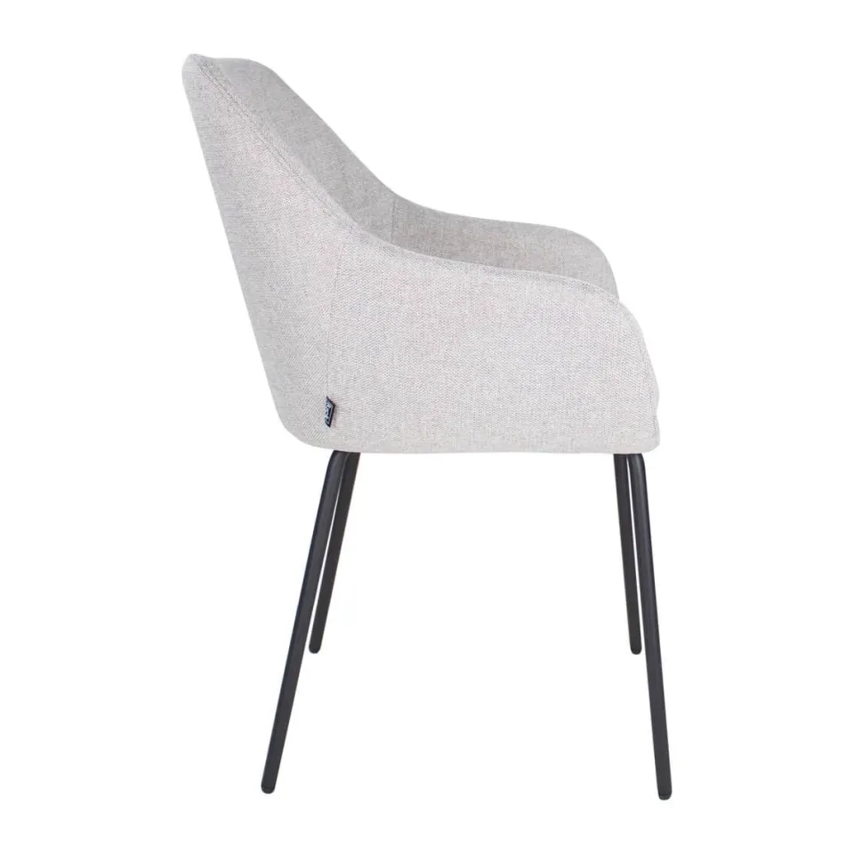Eetkamerstoel Guus van KICK is een stijlvolle en comfortabele stoel met een modern design. De zitting is bekleed met zachte bouclé stof en heeft een afgeronde vorm die direct warmte en elegantie toevoegt aan je eethoek. De licht gebogen rugleuning en geïntegreerde armleuningen zorgen voor aangenaam zitcomfort, terwijl de verticale stiknaden de stoel een subtiele, verfijnde touch geven. Het slanke, zwart metalen onderstel maakt het geheel luchtig en stabiel. Guus is verkrijgbaar in verschillende trendy kleuren, waaronder zwart, taupe en naturel, en past moeiteloos in moderne of Scandinavische interieurs.
