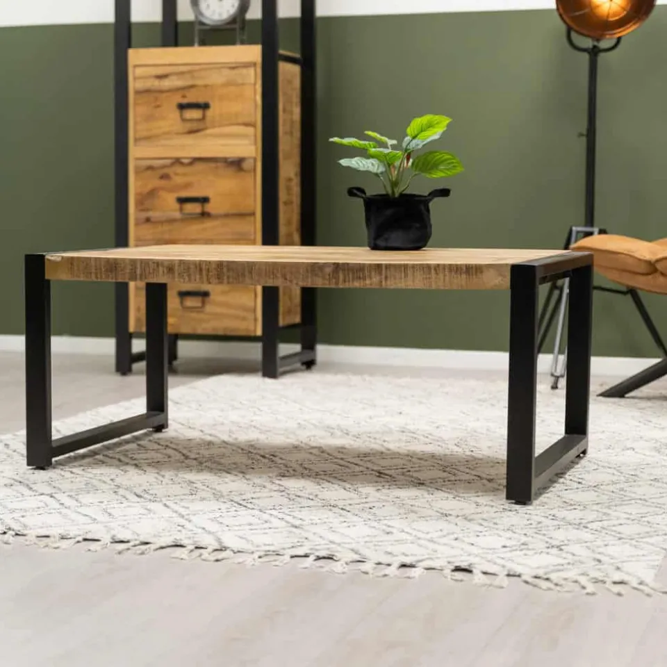 Salontafel Britt combineert mangohout met zwart metaal tot een tijdloos ontwerp dat perfect past in een modern of industrieel interieur. Dankzij het robuuste tafelblad en het strakke frame is deze salontafel niet alleen een blikvanger, maar ook bijzonder stevig en functioneel. Verkrijgbaar in drie varianten: 110 x 60 x 45 cm met een 5 cm dik blad, een versie met lades voor praktische opbergruimte of een uitvoering met een extra plank voor boeken en decoratie. Zo kies je precies de uitvoering die past bij jouw ruimte en wensen. Als onderdeel van de Britt-serie laat deze salontafel zich bovendien moeiteloos combineren met andere meubels uit dezelfde lijn.