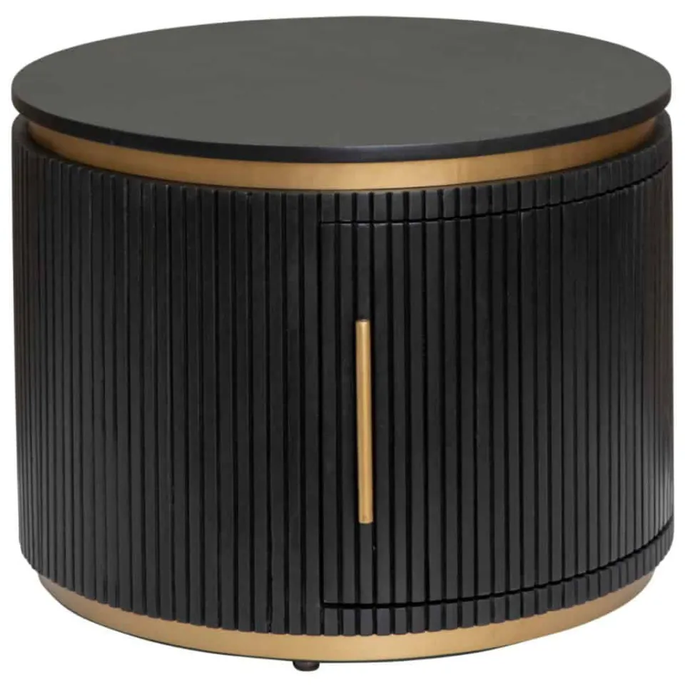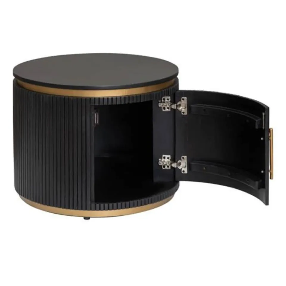 Met Rivello voeg je echt een stukje extra luxe toe aan jouw interieur. De tafel heeft 1 deur met daarachter ruime opbergruimte. Met afgeronde zijkanten. De meubels, gemaakt van prachtig mango hout en afgewerkt in een zwart-bruine kleur, worden gecombineerd met een brass antique onderstel. De mat gouden (-messing) accenten geven de meubelen een elegante uitstraling. Helemaal van nu en perfect binnen jouw hotel chique interieur.