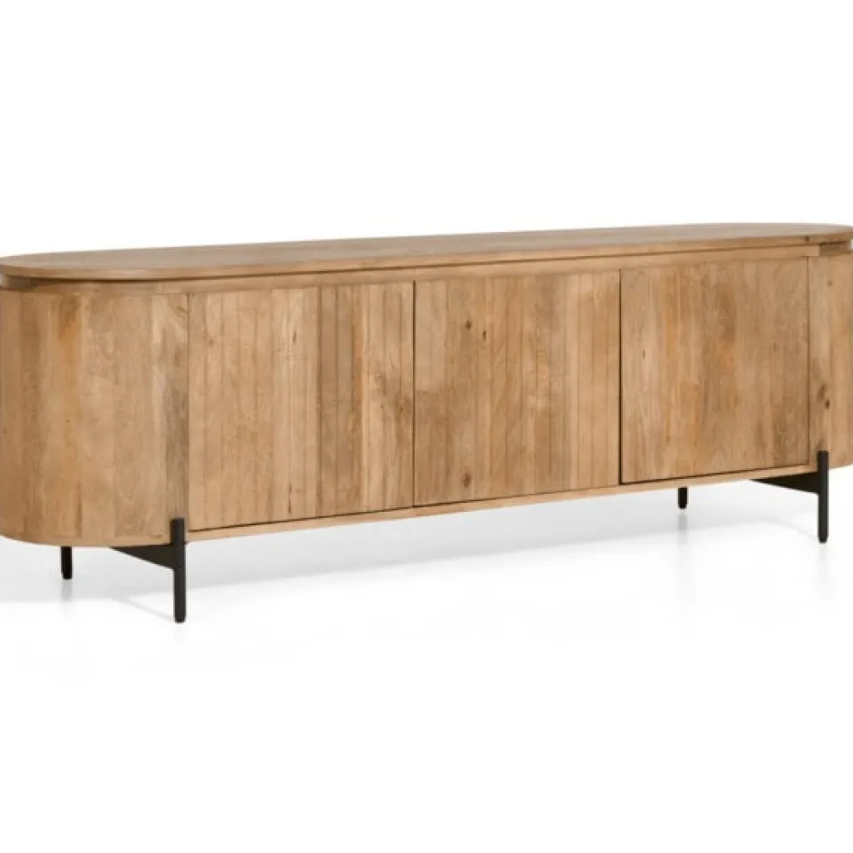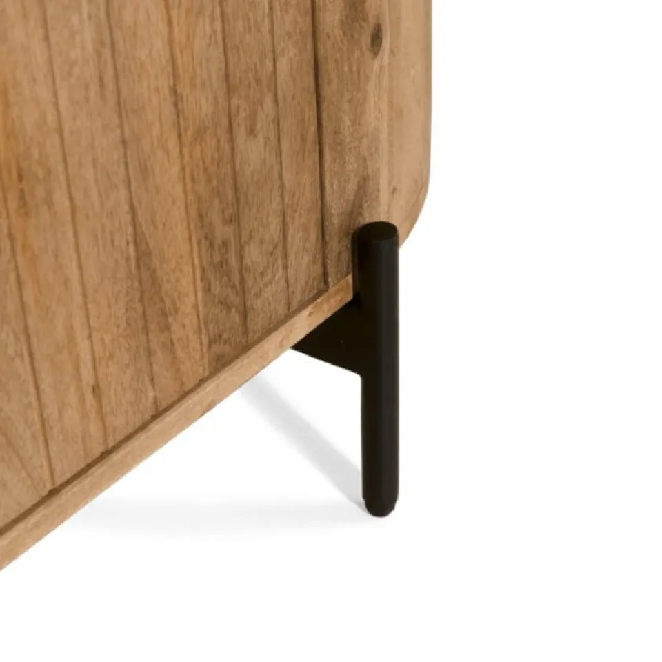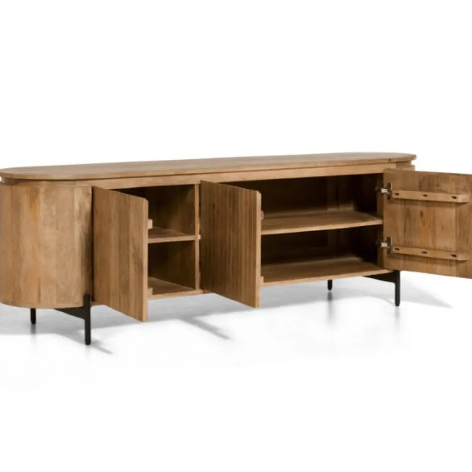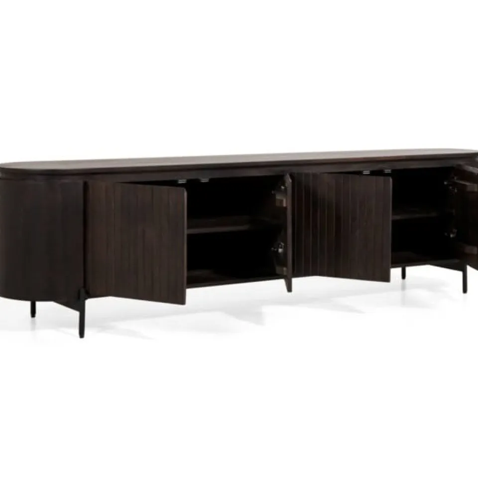 Ontdek de pure elegantie en de natuurlijke charme van ons TV Meubel Mokka. Met een rijke, warm bruine tint, gecombineerd met duurzaam hout, verandert dit stuk onmiddellijk elke woonruimte in een sfeervolle, warme omgeving. Dit meubelstuk is vervaardigd uit robuust mango hout, bekend om zijn unieke patronen en duurzaamheid. De afwerking versterkt de natuurlijke schoonheid van het hout, waardoor het in elk interieur perfect tot zijn recht komt. De subtiele ronde zijkanten maken het ontwerp af en zorgen voor een zachte, elegante uitstraling.