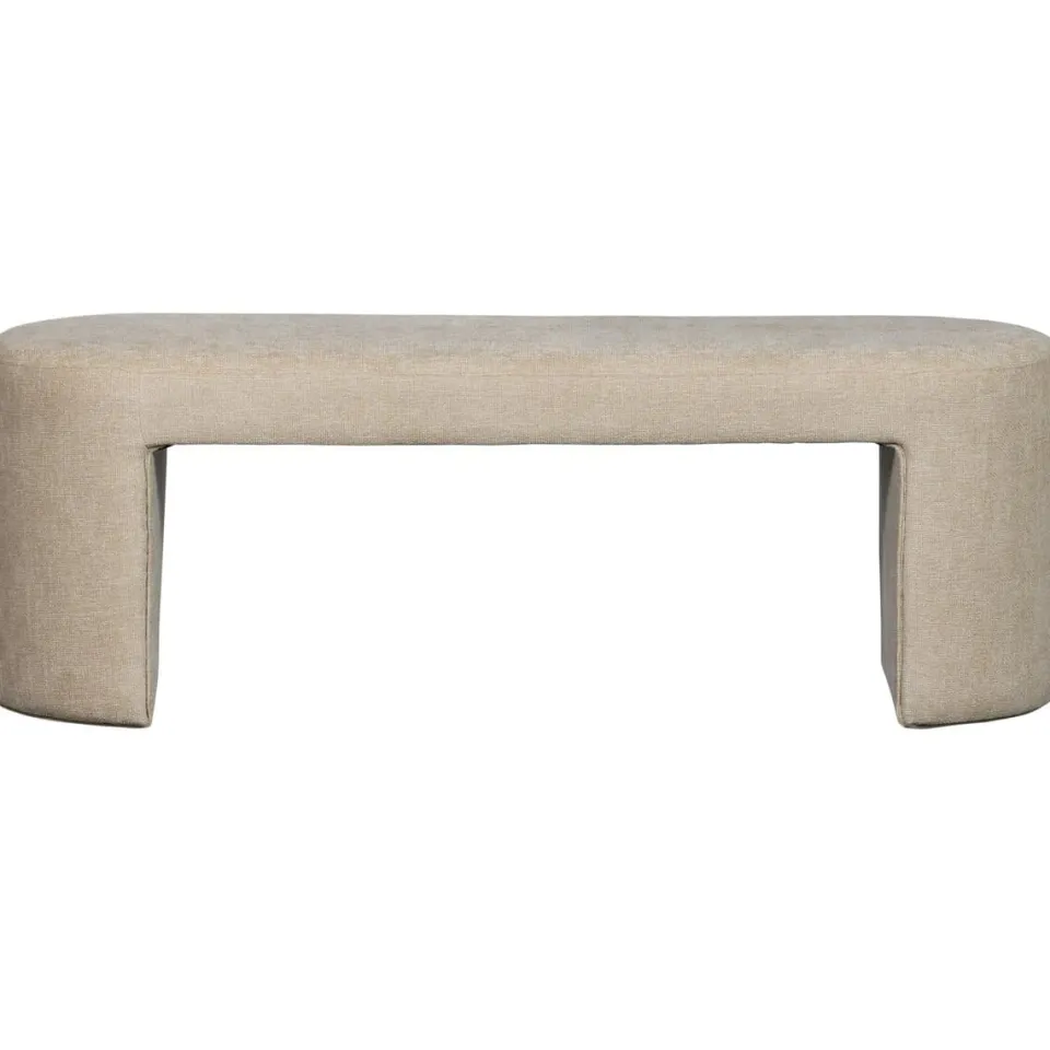 Het bankje is volledig bekleed met een zachte chenille stof. Deze stof heeft een rijke structuur met een subtiele glans, wat zorgt voor een luxe en warme uitstraling. Tegelijk voelt de bekleding comfortabel aan en is zij geschikt voor dagelijks gebruik. De royale zitting biedt ruimte aan twee tot drie personen, terwijl het compacte formaat ervoor zorgt dat het bankje ook in kleinere ruimtes goed tot zijn recht komt.