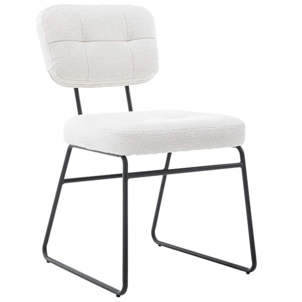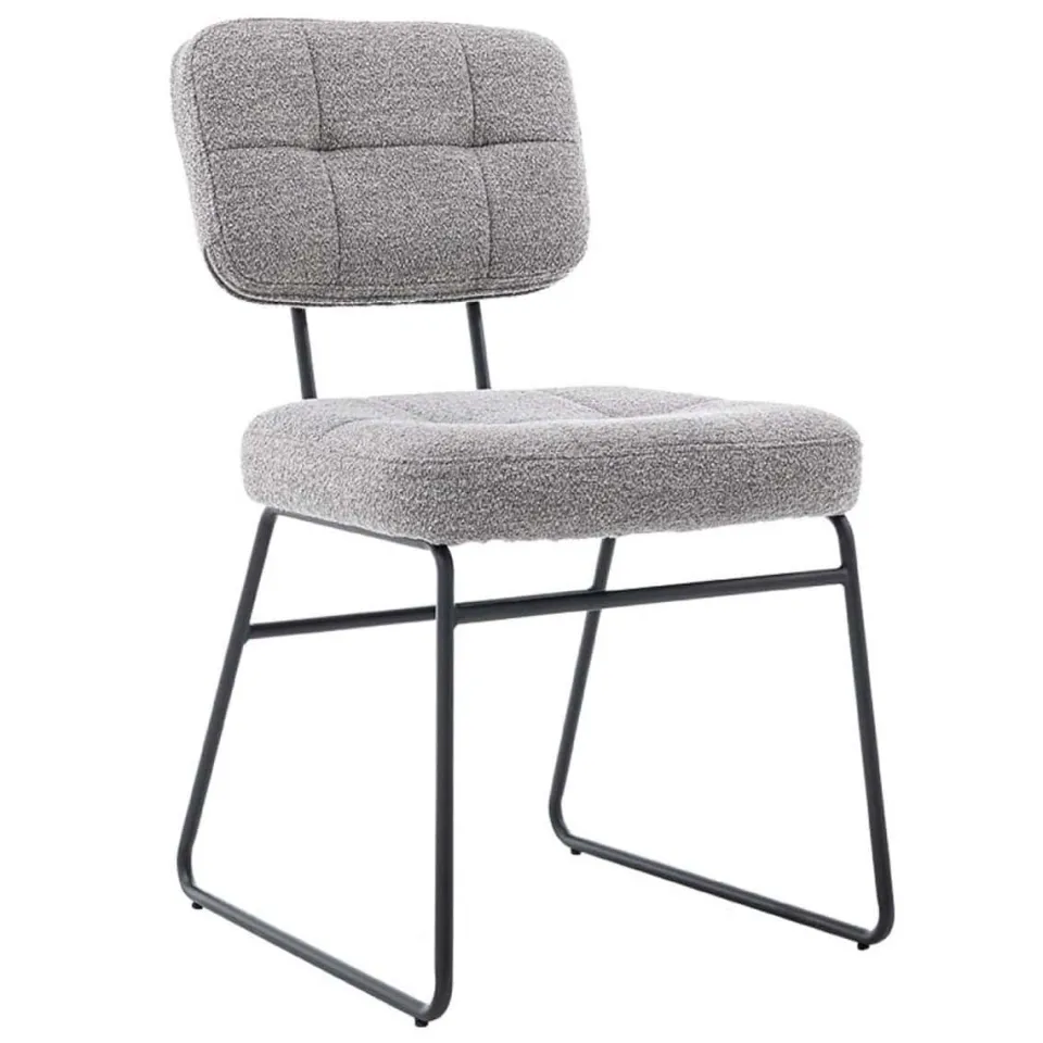 Eetkamerstoel Padola is een elegante en veelzijdige stoel die moeiteloos past in uiteenlopende interieurstijlen. De zitting is bekleed met een zachte, gewatteerde stof die zorgt voor een comfortabele zit en een luxe uitstraling. Verkrijgbaar in drie natuurlijke kleuren – grijs, naturel en zand – laat Padola zich gemakkelijk combineren met zowel lichte als donkere eettafels. Het slanke, metalen onderstel geeft de stoel een moderne en luchtige look, zonder in te leveren op stabiliteit.