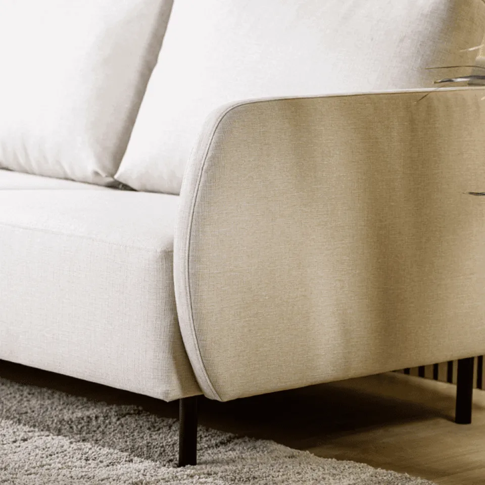Hoekbank Soy van HUUS brengt rust en comfort samen in een strak en evenwichtig ontwerp. De heldere lijnen zorgen voor een moderne uitstraling, terwijl de zachte vormen het geheel toegankelijk maken. Daardoor past deze hoekbank moeiteloos binnen uiteenlopende interieurstijlen, van minimalistisch tot warm en huiselijk.