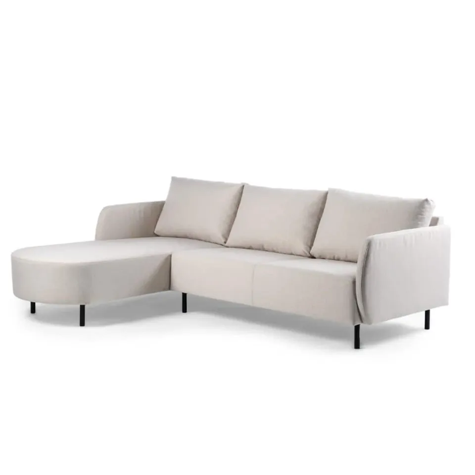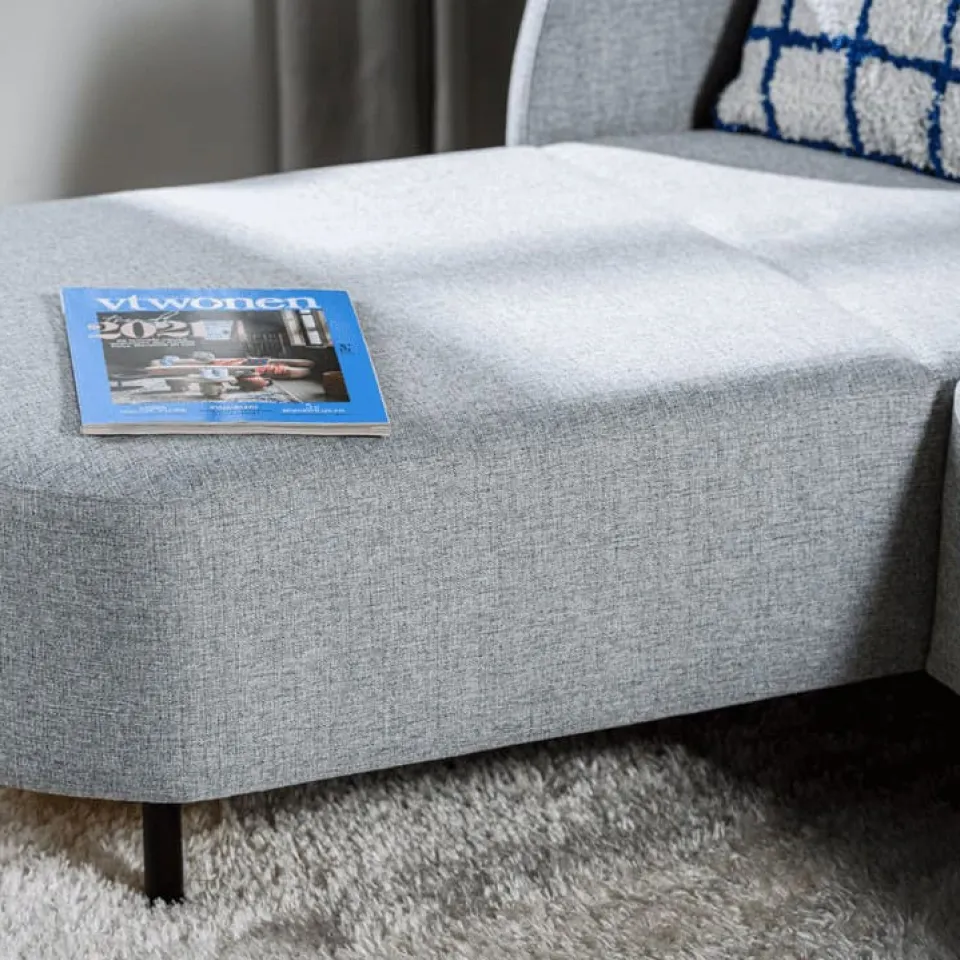 De zwarte metalen poten geven de bank een luchtige en eigentijdse look, waardoor het ontwerp ruimtelijk blijft ogen. Praktisch is deze hoekbank ook in gebruik. Je kiest eenvoudig voor een linker- of rechterhoekopstelling, zodat de bank perfect aansluit bij de indeling van jouw woonruimte.