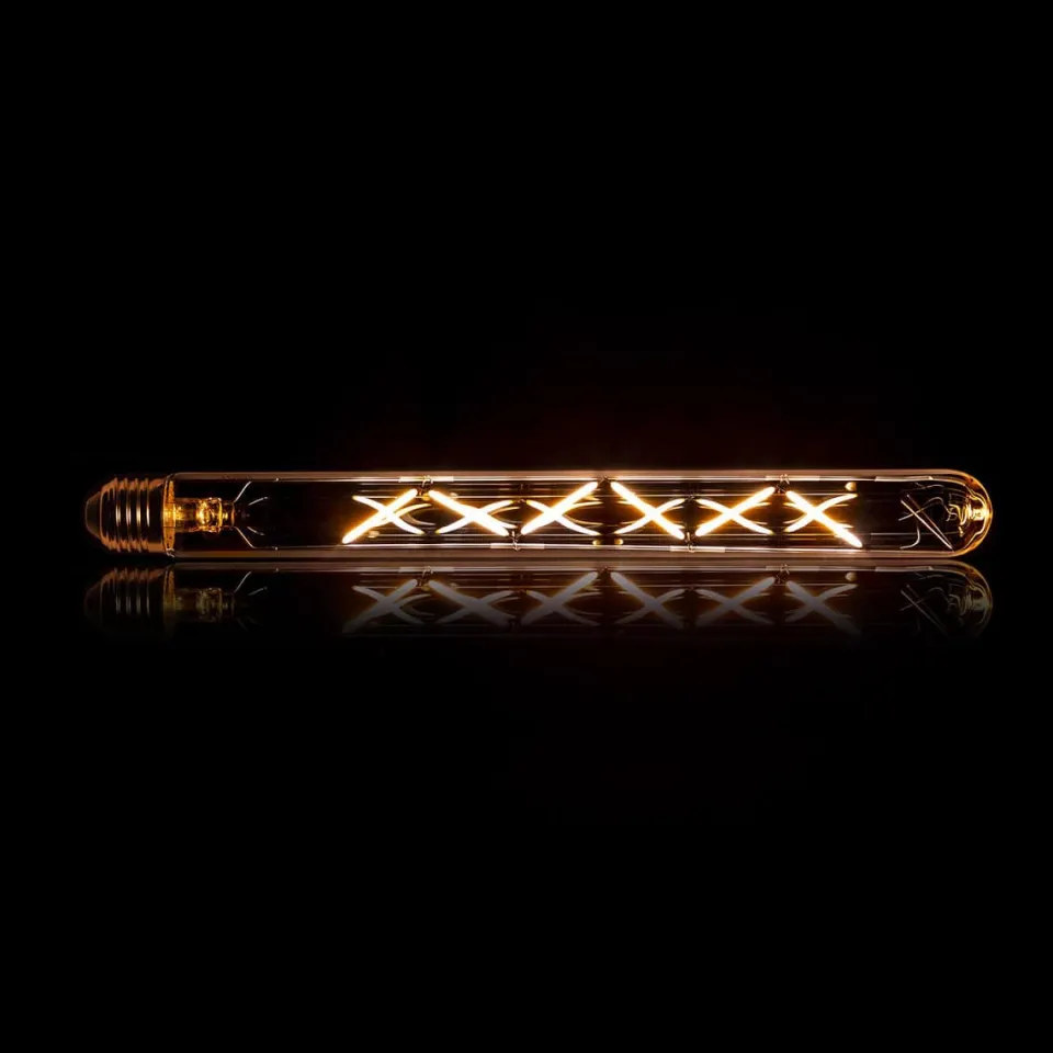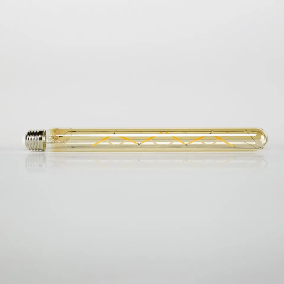 Deze lichtbron LED filament heeft amberkleurig glas en heeft de vorm van een buis en is30 centimeter lang. Aangezien deze lichtbron een lichtkleur van 2100K heeft, geeft hij extra warm licht. De lichtbron is dimbaar. Fitting: E27 Wattage: 4 Lichtkleur: 2100K Lumen: 280 lm Onderhoud: Afnemen met een lichtvochtige doek