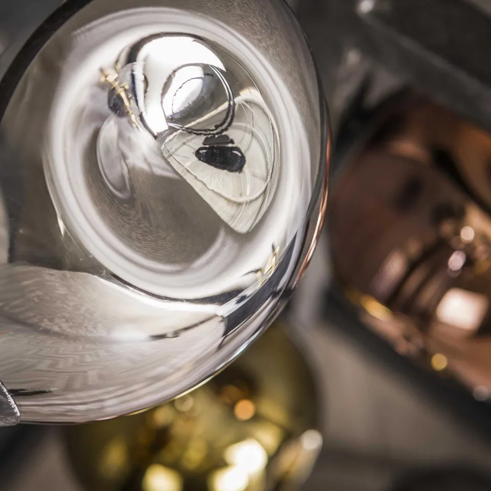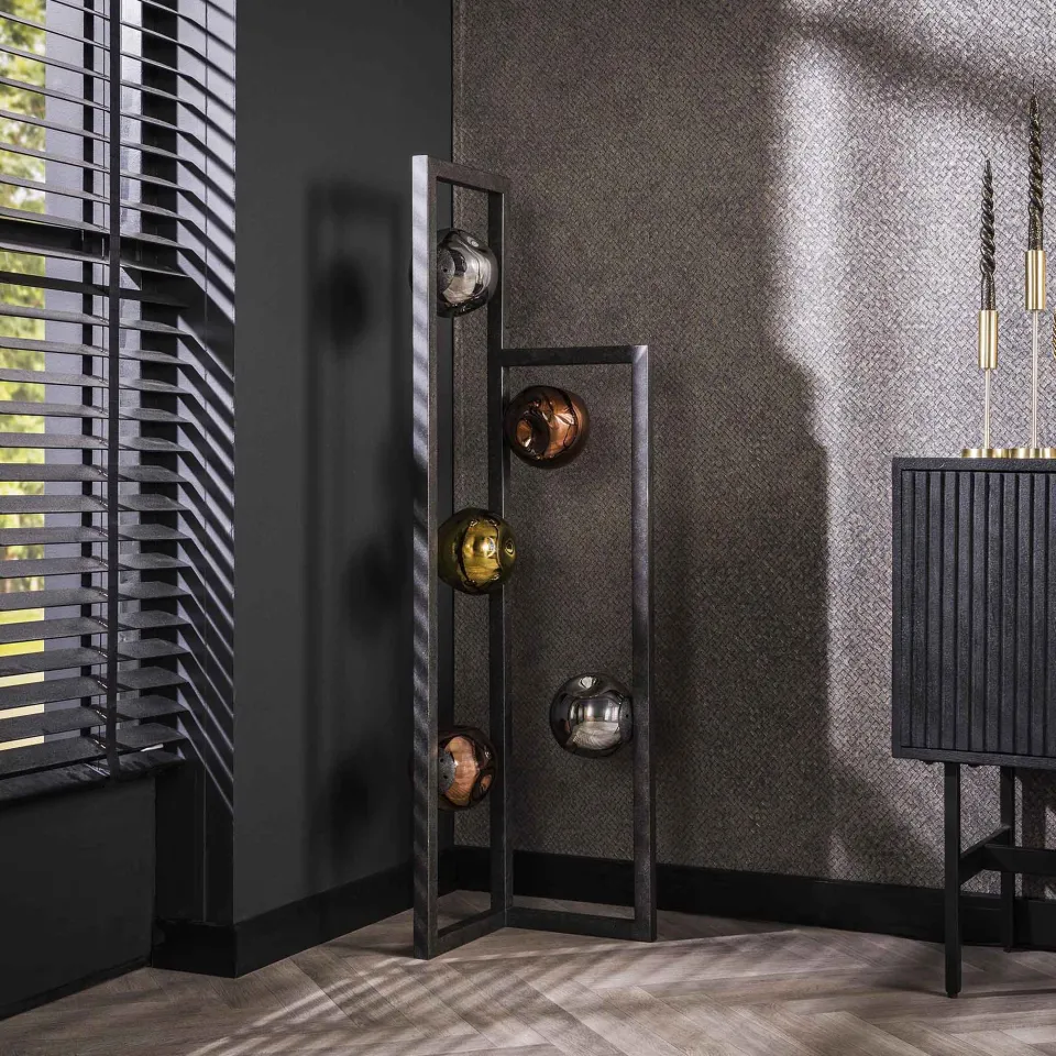 Deze prachtige vloerlamp is een echte eye-catcher! De lamp is uitgevoerd in metaal met vijf glazen kappen. De lamp is gemaakt om in de hoek te plaatsen en dit zorgt voor een super sfeervol effect. De kappen zijn uitgevoerd in drie verschillende kleuren, namelijk: goud, koper en chroom. De kappen kunnen los gehaald worden, waardoor de lichtbron gemakkelijk geplaatst kan worden.