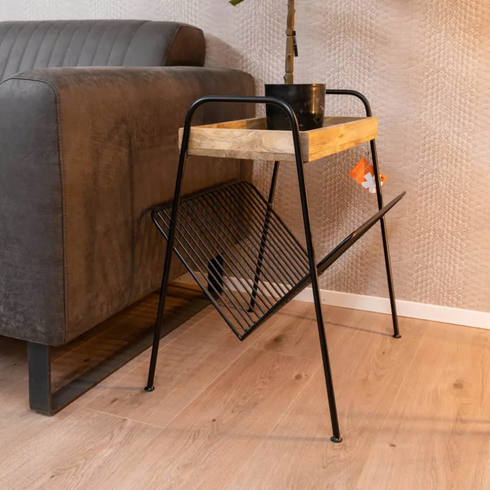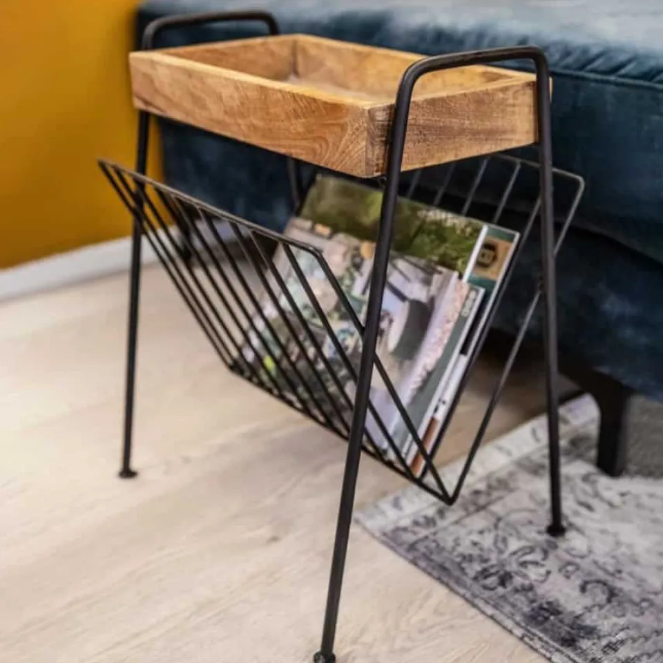 Deze praktische bijzettafel beschikt over een handige plank met opstaande randen (zodat er niks van af kan vallen) en heeft daaronder een tijdschriftenrek voor je favoriete leesvoer. Zo heb je altijd én je drinken én je favoriete leesvoer binnen handbereik!