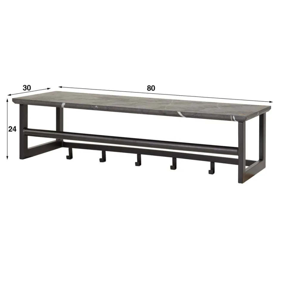 Deze kapstok Berna is uitgevoerd in melamine met een ceramic uitstraling en beschikt over 6 haken of 12 haken, een roede en een prachtige hoedenplank. Deze kapstok is eigentijds en zo stijlvol. De kapstok wordt door middel van 2 schroefgaten aan de achterzijde aan de wand gemonteerd.
