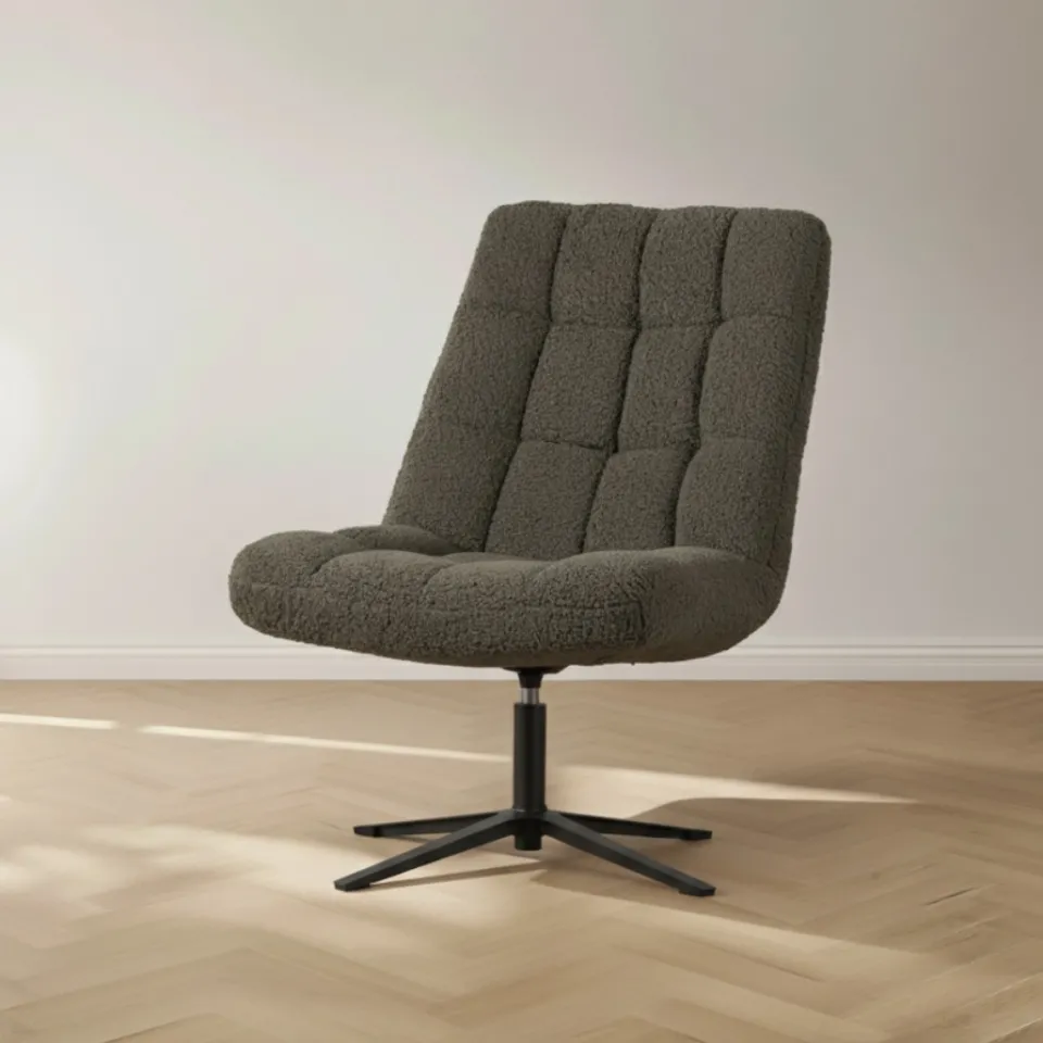 Draaifauteuil Job van het Nederlandse merk WOOOD combineert een stoere uitstraling met zachte, organische vormen. De zitting en rugleuning zijn bekleed met luxe Dale washed velvet in warm antraciet, een soepele stof met een subtiele, matte glans die prettig aanvoelt en geschikt is voor intensief gebruik. Het zwart metalen onderstel met poedercoating zorgt voor een robuuste basis en geeft de fauteuil een moderne touch. Dankzij de royale zitbreedte en comfortabele rugleuning is Job ideaal voor een ontspannen moment in de woonkamer of leeshoek.