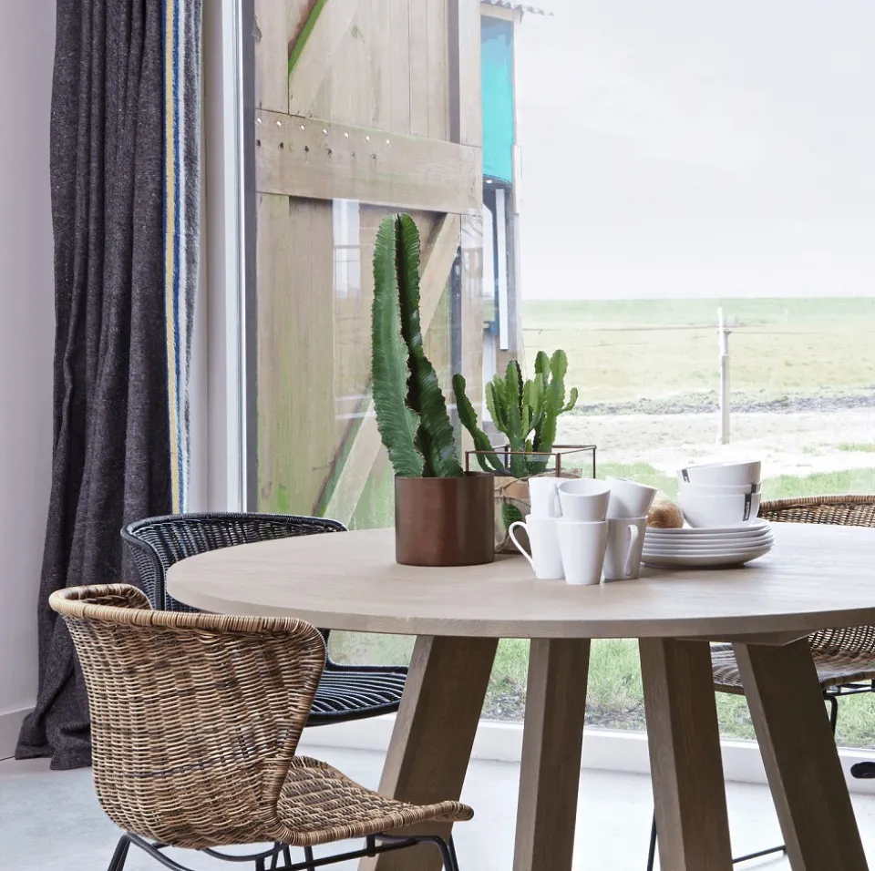 Eetkamerstoel Wings van HUUS valt op door zijn verfijnde design en natuurlijke uitstraling. De rugleuning is afgewerkt met een fraai geweven patroon dat direct karakter toevoegt aan de ruimte. Dankzij de armleuningen en comfortabele zitting is deze stoel ideaal voor lange avonden aan tafel. Het zwarte metalen frame maakt het geheel compleet. Wings wordt geleverd per set van twee en is verkrijgbaar in meerdere kleuren.