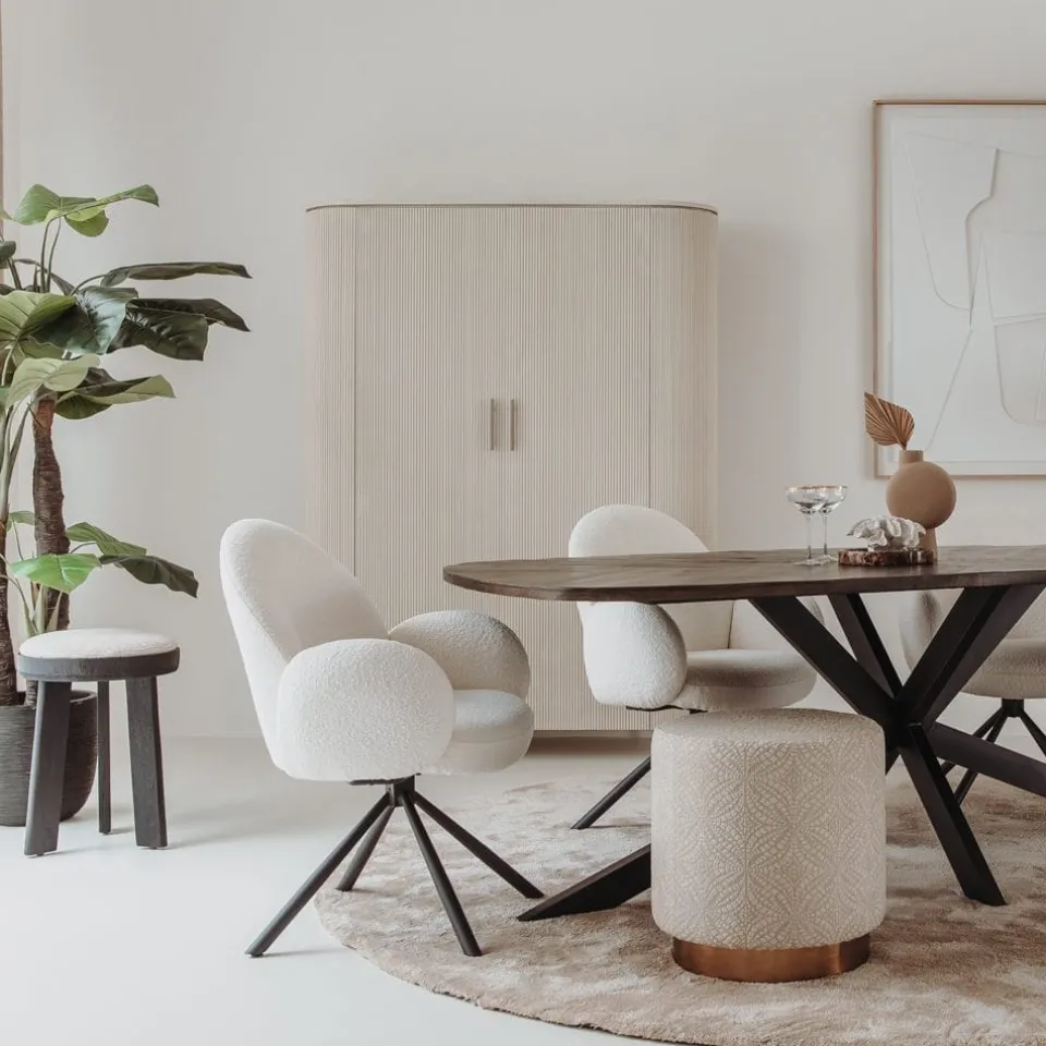 Ontdek de Kast Corbetta. Dankzij de ronde vorm is ‘ie echt een moderne eyecatcher. Het mangohout met stone finish geeft Corbetta een chique look. De uitsparing tussen het hout zorgt voor een strak design, helemaal in combinatie met die cleane handgrepen en poten. Een stijlvolle toevoeging aan je interieur!