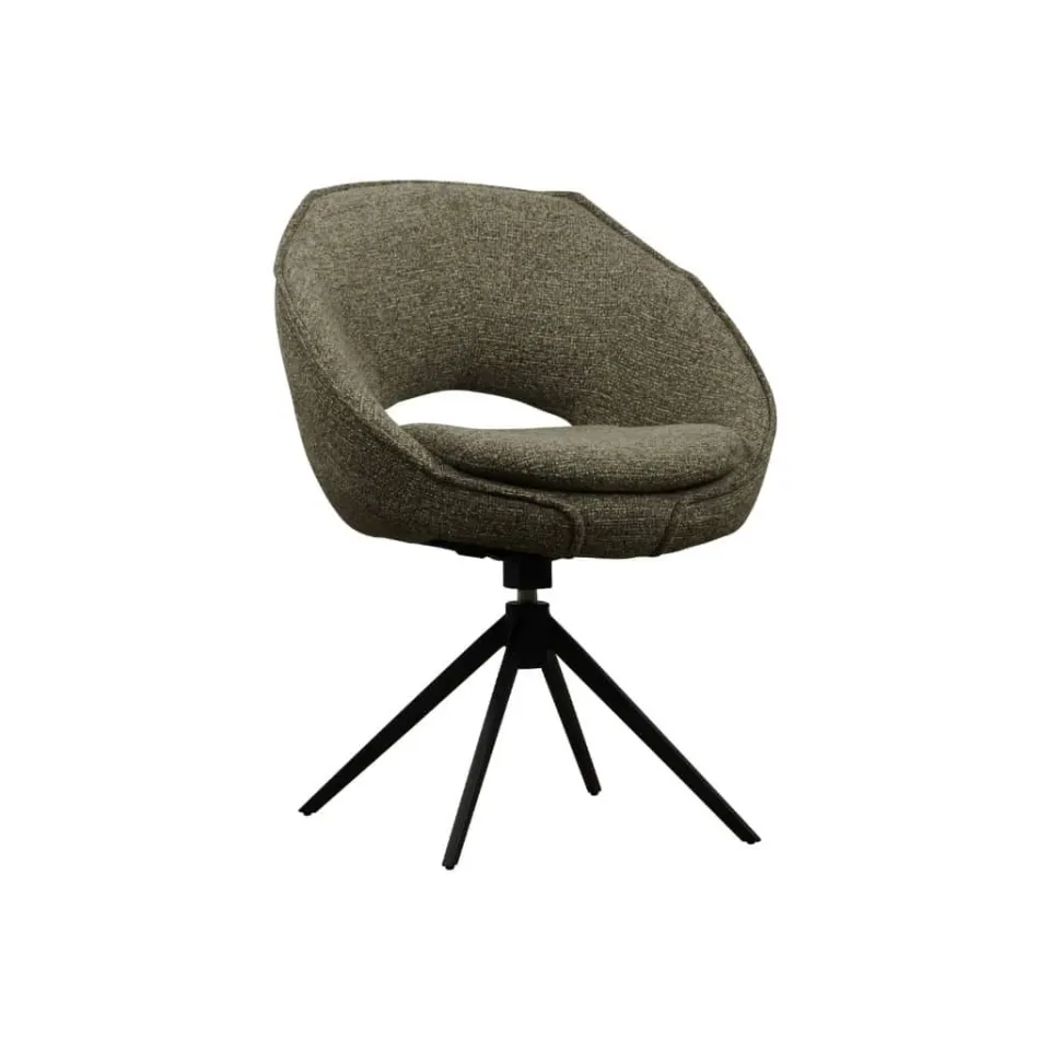 Eetkamerstoel Bruce combineert modern design met een uitnodigend zitcomfort. De ruime zitting is bekleed met een zachte stof in een rustige, neutrale kleur en biedt comfortabele steun tijdens lange diners. Het zwarte metalen onderstel met kruisvormige pootconstructie geeft de stoel een stoere uitstraling. Dankzij de draaifunctie is Bruce extra praktisch in gebruik, zowel aan de eettafel als in een vergaderruimte.
