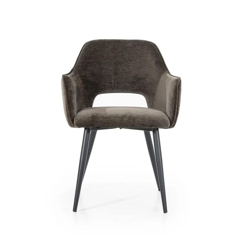 Eetkamerstoel Esmee combineert comfort met een elegante, moderne uitstraling. De zitting is bekleed met stevig polyester en wordt ondersteund door een rank onderstel van metaal met slijtvaste coating. De geïntegreerde armleuningen zorgen voor extra steun en een ontspannen zitervaring. Esmee is verkrijgbaar in drie neutrale kleuren – antraciet, beige en bruin – waardoor je deze stoel eenvoudig kunt combineren met verschillende interieurstijlen. De compacte vorm maakt Esmee niet alleen geschikt voor de eetkamer, maar ook voor een werkplek of vergaderruimte.